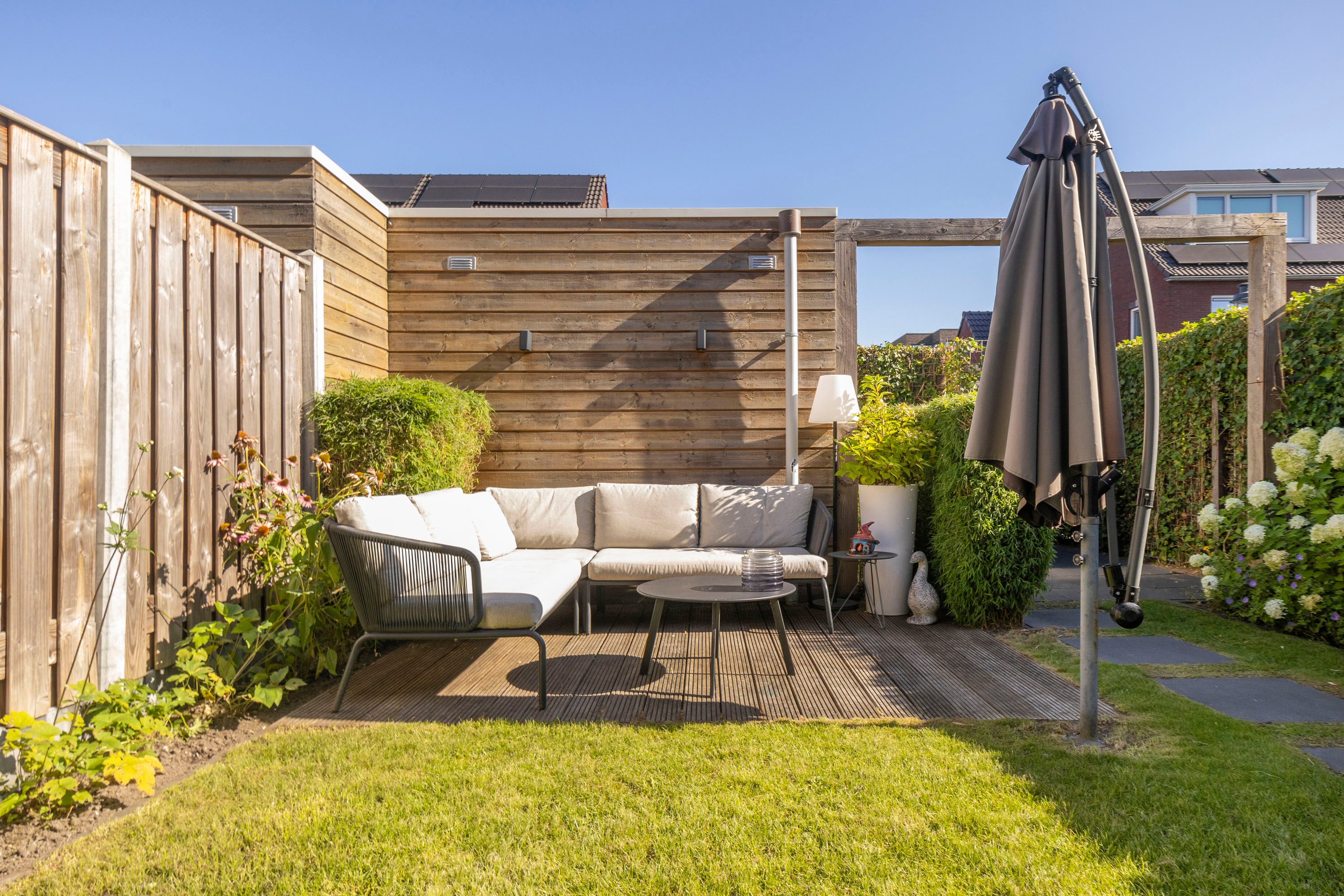 De onderhoudsvriendelijke achtertuin is gelegen op het noorden, maar dankzij de ruimte vind je hier altijd een zonnig plekje om te genieten. Achterin bevindt zich een houten berging voor fietsen en tuingereedschap, en er is een achterom die grenst aan een parkeerhofje.