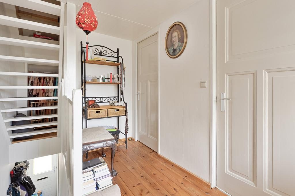 Eerste verdieping: De ruime overloop biedt ruimte voor een werkplek en geeft toegang naar twee slaapkamers. De grote slaapkamer is gelegen aan de voorzijde en is voorzien van een dakkapel, wastafel en kledingruimte. De tweede slaapkamer gelegen aan de achterzijde is voorzien van een Velux dakraam.