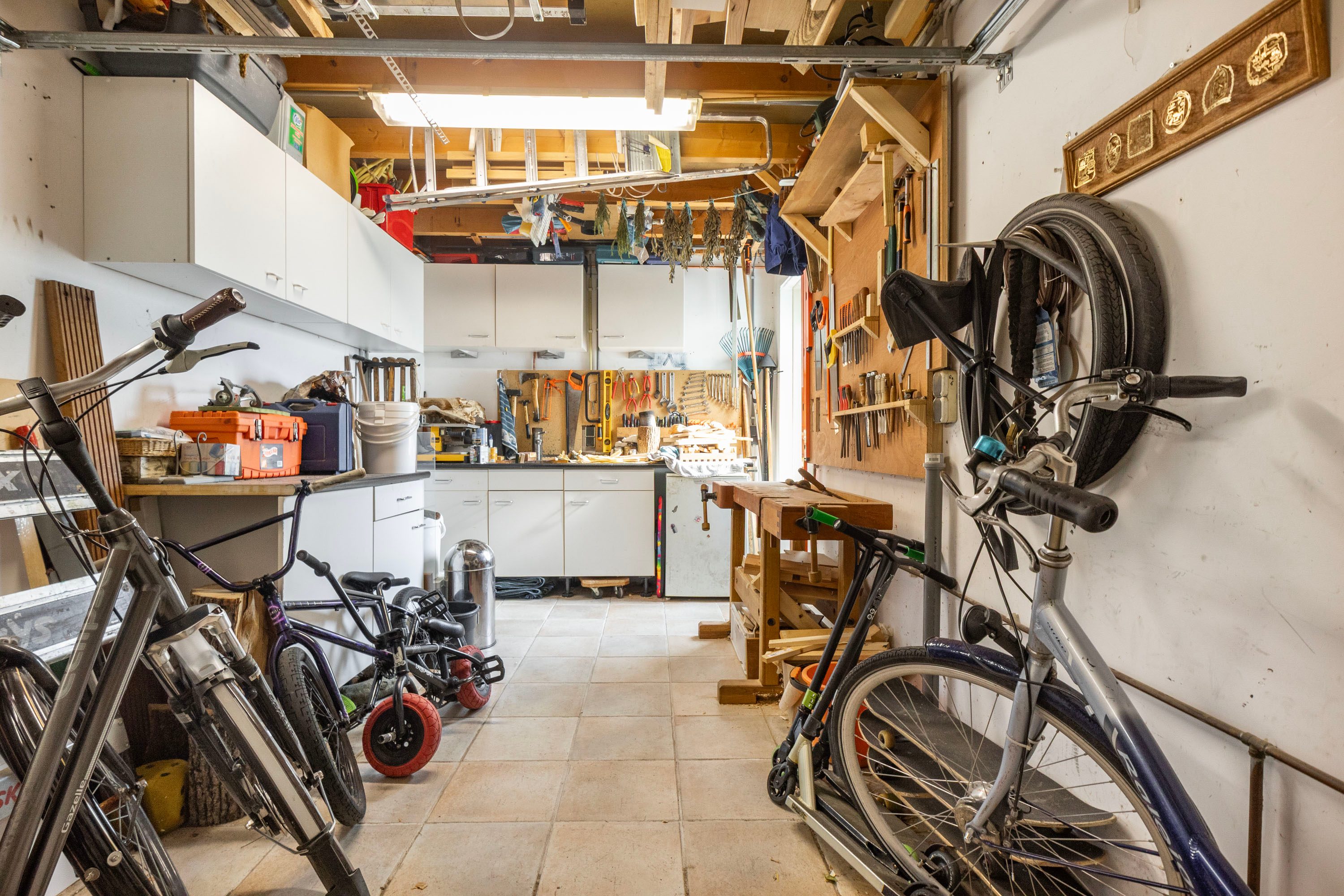 De achtertuin is gelegen op het oosten en beschikt over een royale, beschutte veranda waar je het hele jaar door van een gezellige zitplek geniet, ongeacht de weersomstandigheden. Daarnaast grenst de tuin aan de garage van 13,9 m², die ideaal is voor het opbergen van fietsen, tuingereedschap en andere voorwerpen. Aan de voorzijde van de woning is er parkeerruimte op eigen terrein, zodat je altijd gemakkelijk en veilig je auto kunt parkeren.