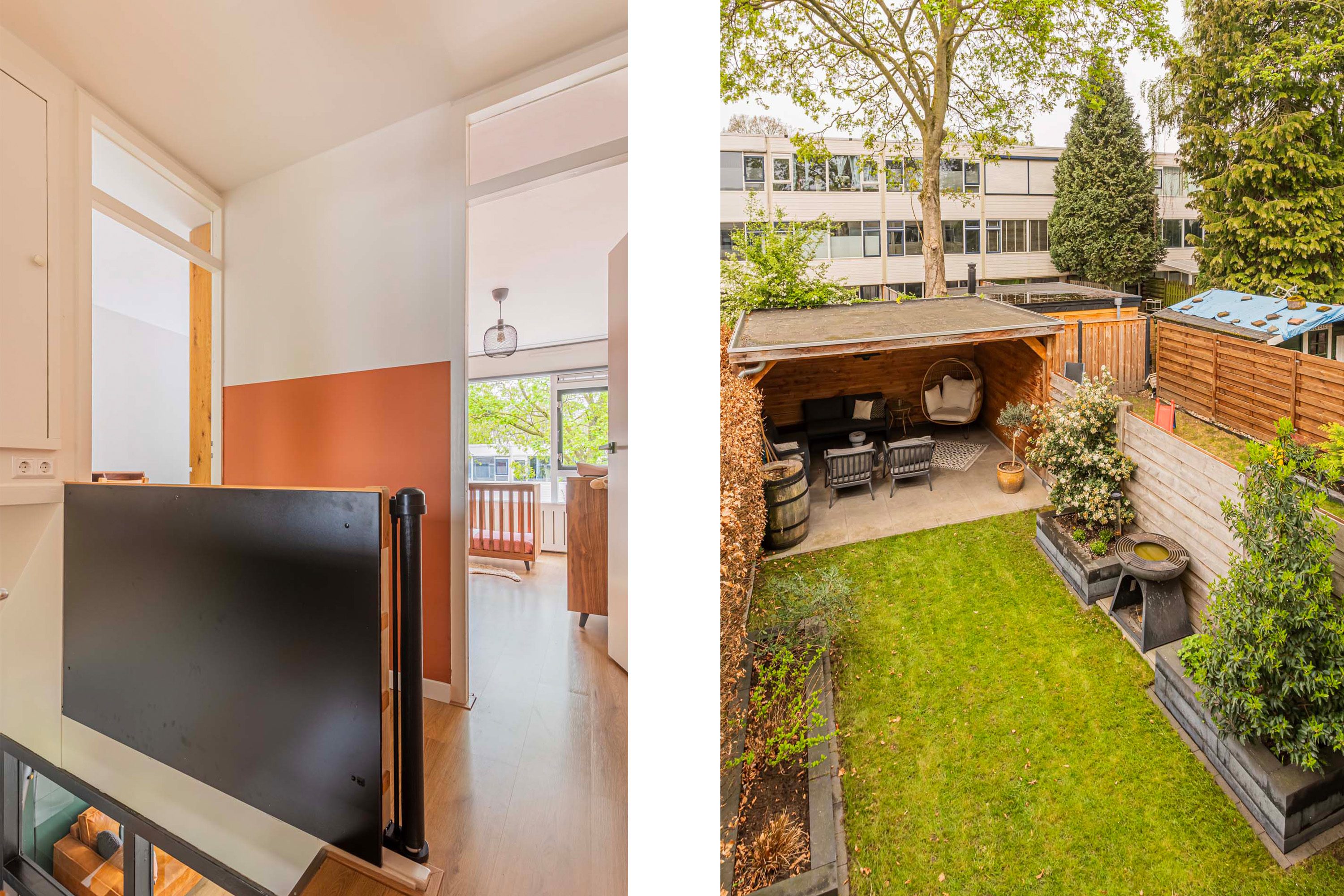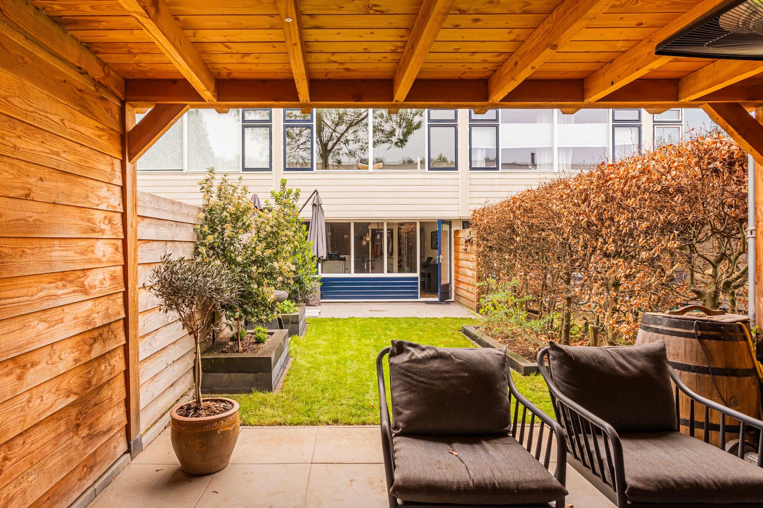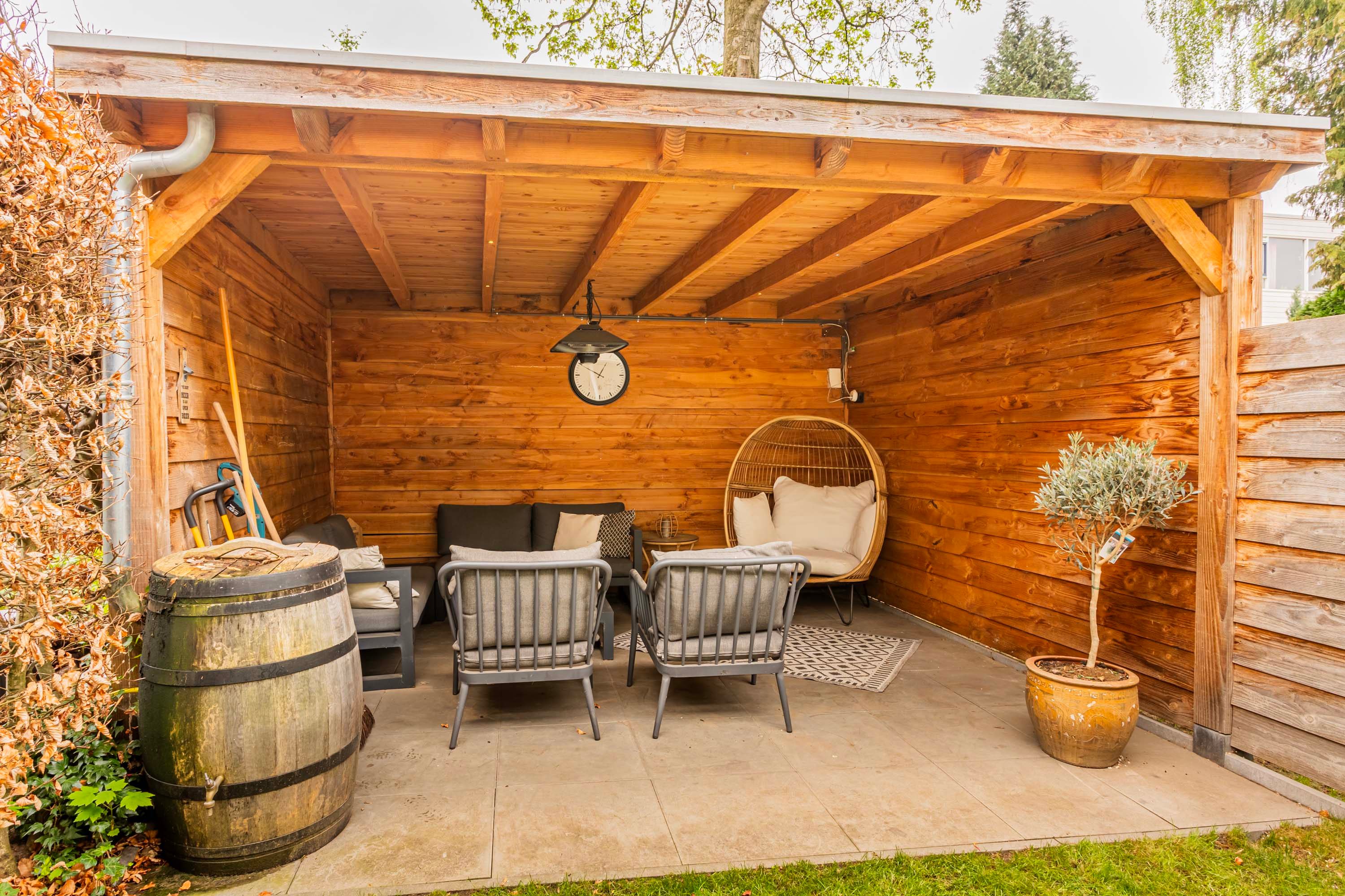 De achterdeur op de begane grond leidt naar de verzorgde achtertuin, gelegen op het noordwesten. De tuin is fraai aangelegd en biedt voldoende ruimte om te ontspannen of te spelen. Achterin de tuin staat een heerlijke veranda, waar je optimaal kunt genieten van het buitenleven, ongeacht het weer. Perfect om te ontspannen met een goed boek of te genieten van een gezellige avond met vrienden.