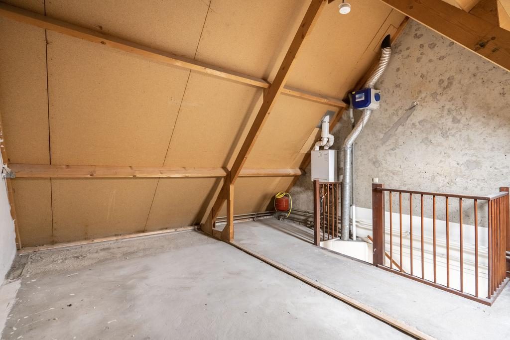 De open zolder ruimte biedt ruimte voor een vierde slaapkamer en hier bevindt zich de C.V.- opstelling.