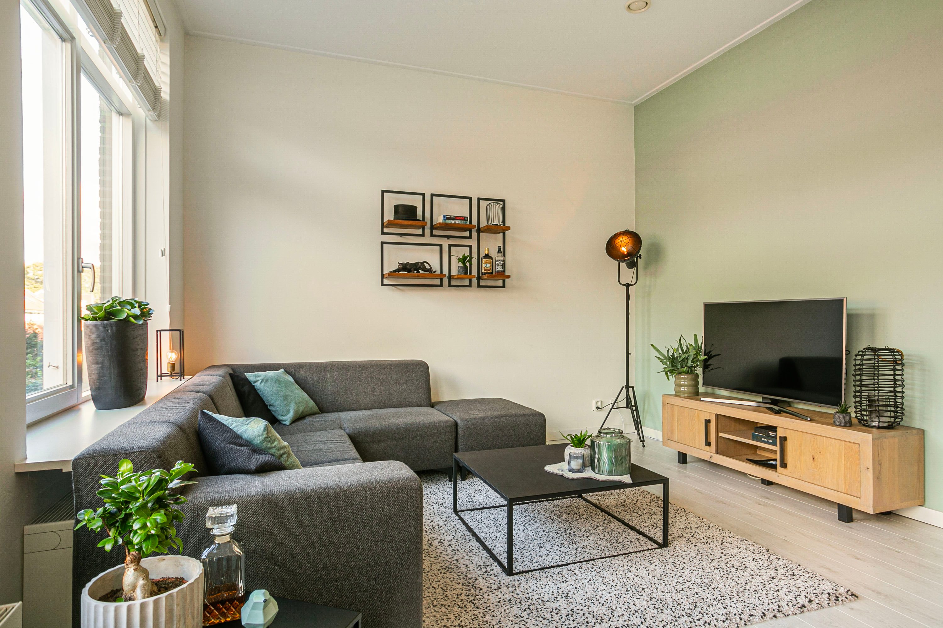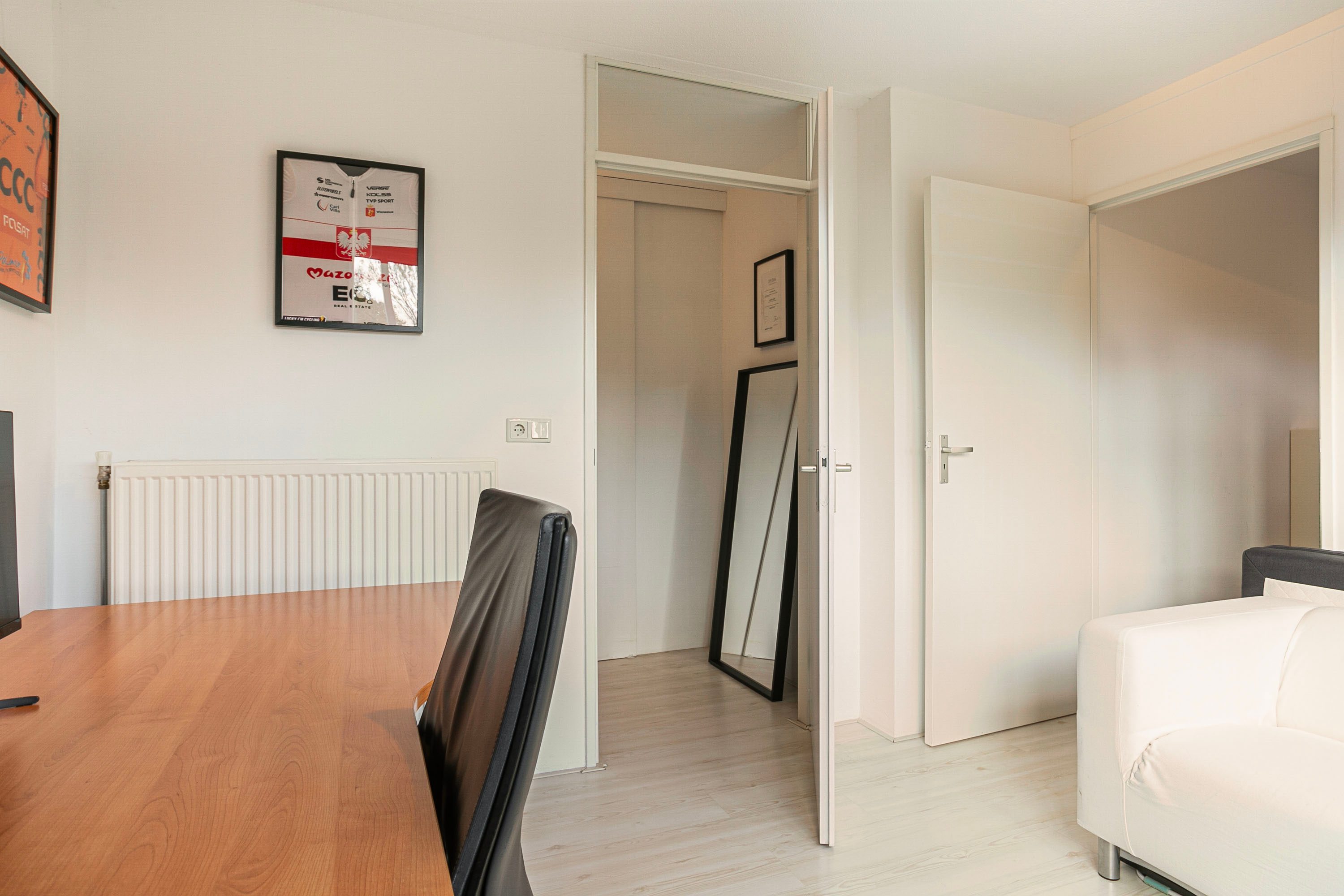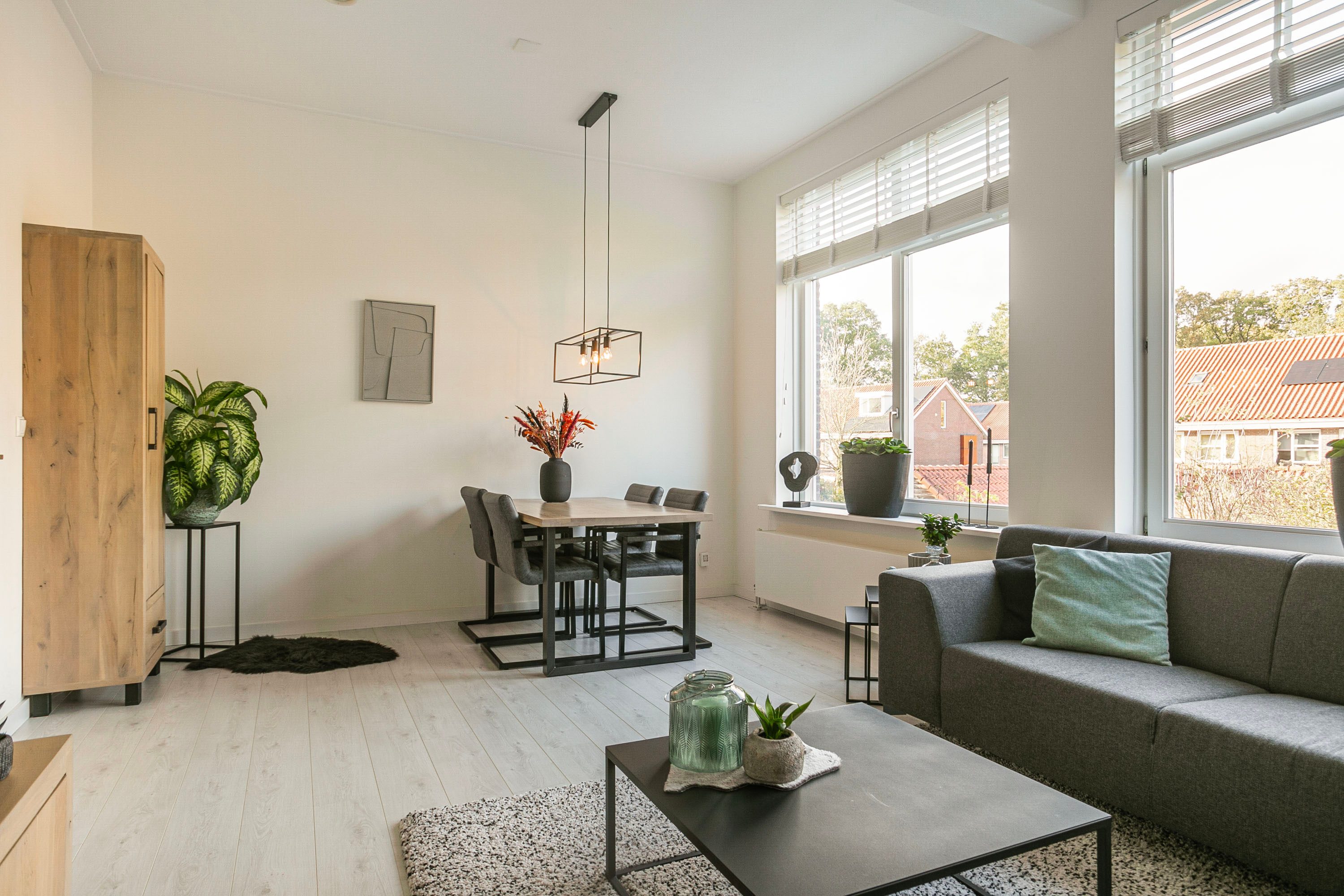 Op de eerste verdieping bevindt zich de ruime woonkamer van bijna 23 m². Dankzij de hoge plafonds en grote raampartijen voelt de ruimte heerlijk ruim en licht aan. Er is ruimte genoeg voor zowel een zithoek als een ruime eettafel. Doordat de woonkamer op de tweede verdieping ligt, geniet je van optimale privacy en geen ongewenste inkijk.