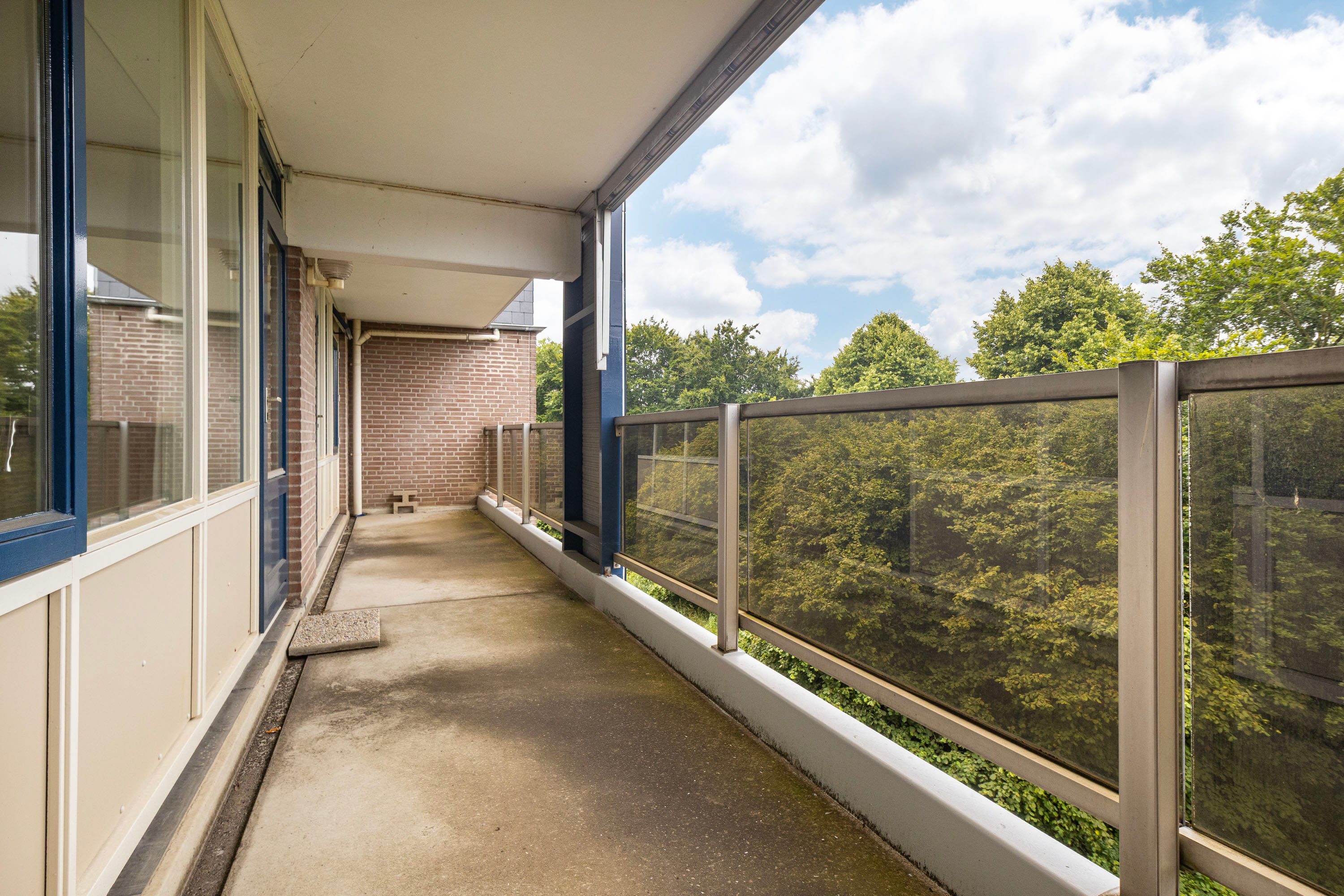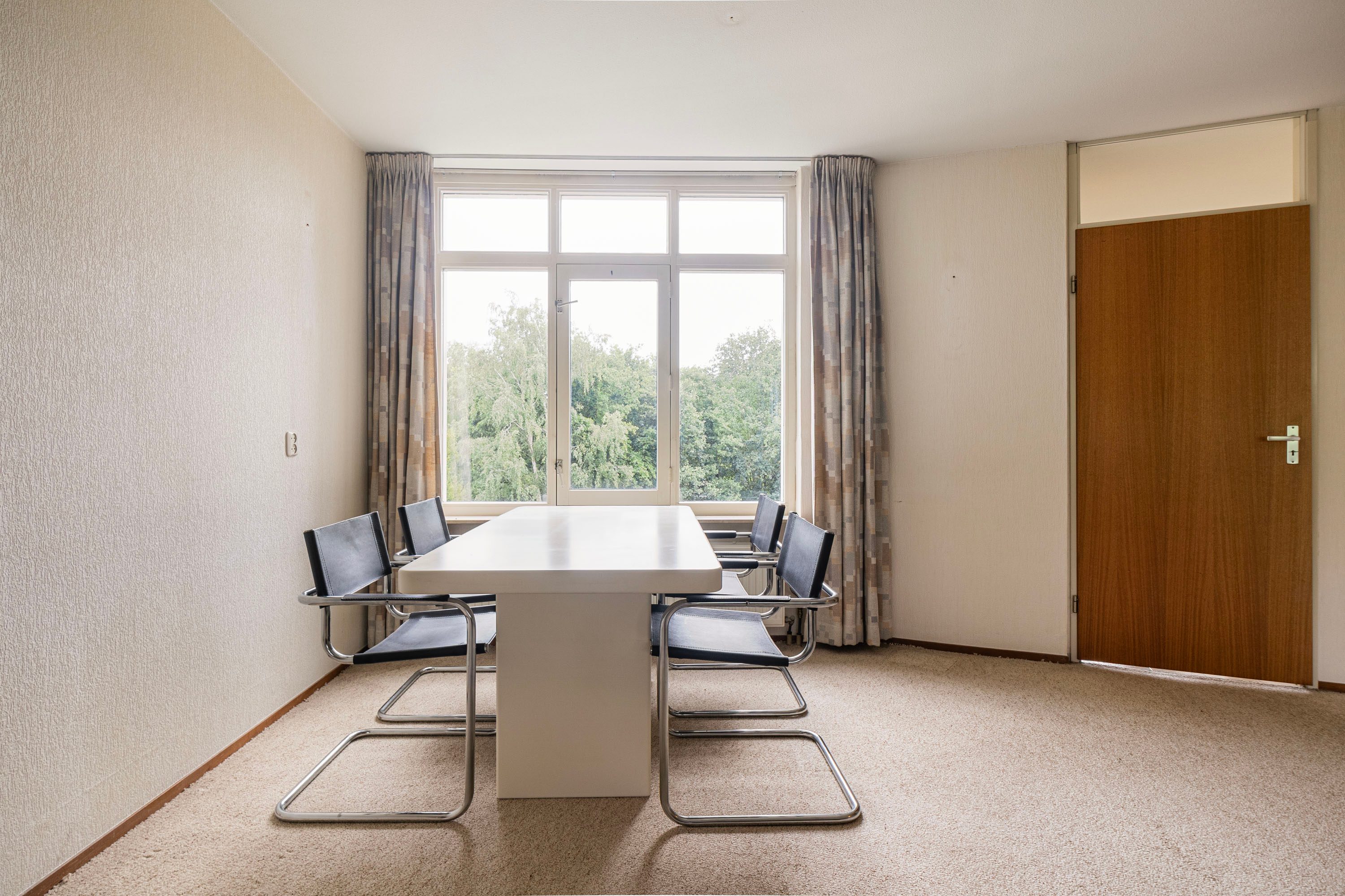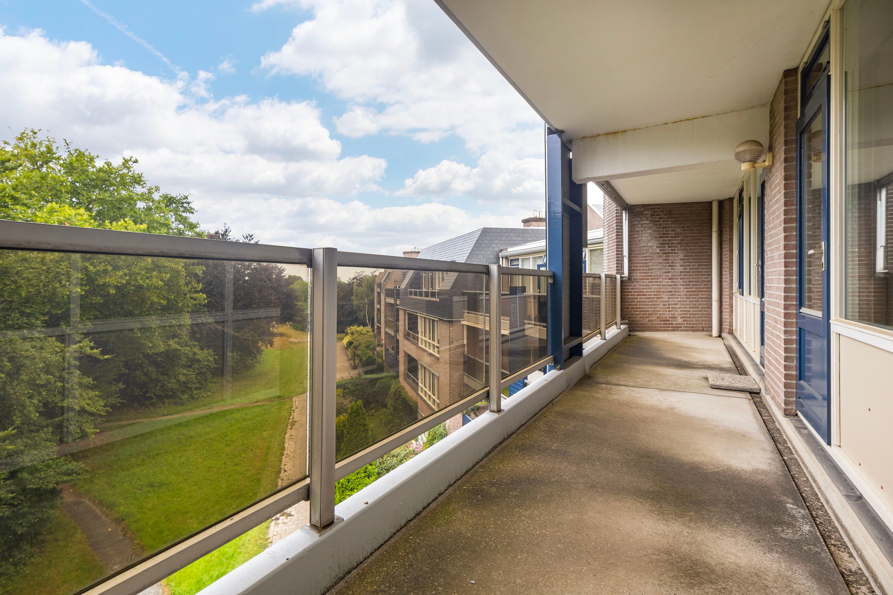 De woonkamer van 45 m² is het hart van het appartement. De grote raampartijen zorgen voor veel licht en een fijn uitzicht op het groen. De open haard maakt het geheel sfeervol. Vanuit de woonkamer heb je toegang tot het zonnige balkon op het zuidwesten (18 m²), een heerlijke plek om buiten te zitten.