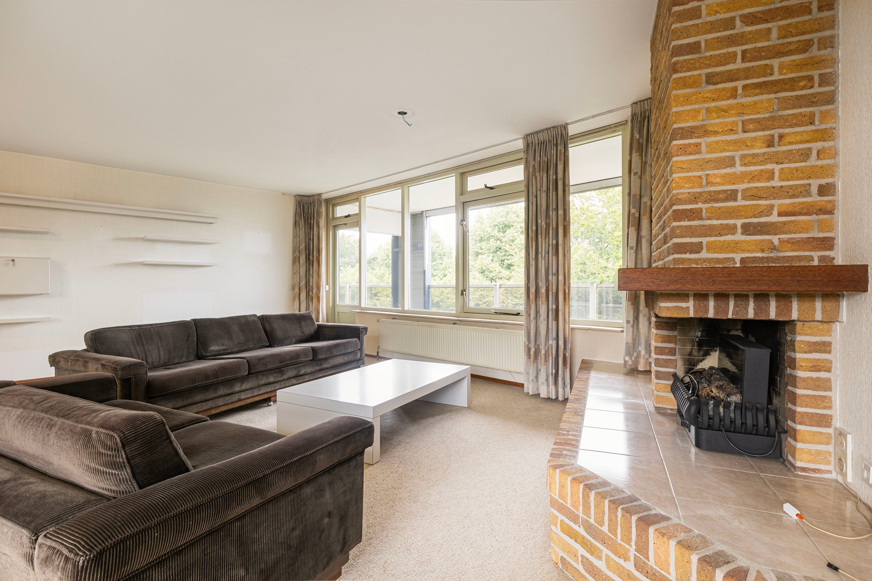 + Woonkamer van 45 m² met open haard en toegang tot het grootste balkon