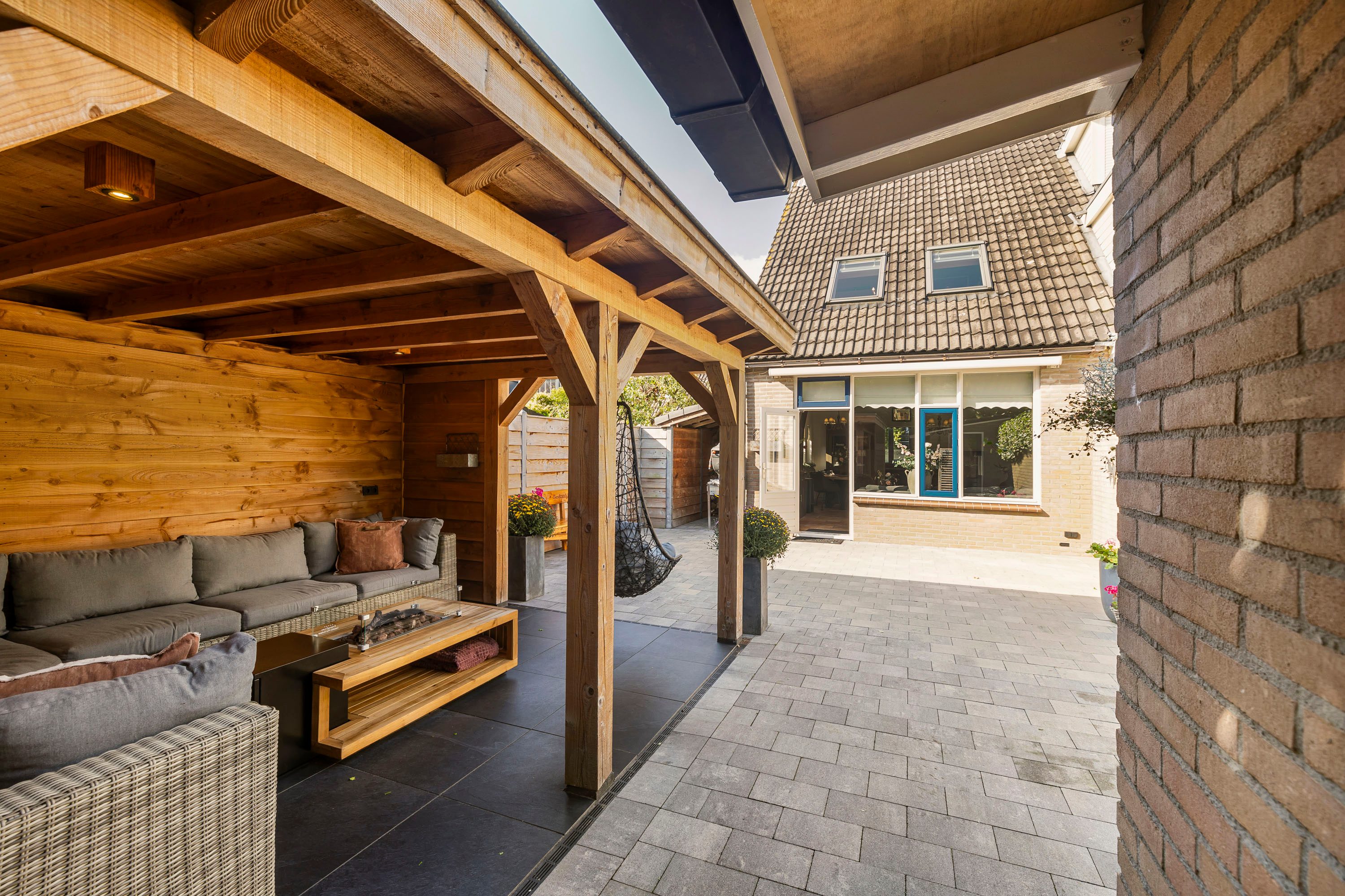 De tuin van circa 40 m² ligt op het oosten en beschikt over een veranda en een ruime berging van circa 7 m². Dankzij de achterom is de tuin goed bereikbaar. Ook aan de voorzijde van de woning is een zitje gecreëerd, ideaal om te genieten van de middag- en avondzon.