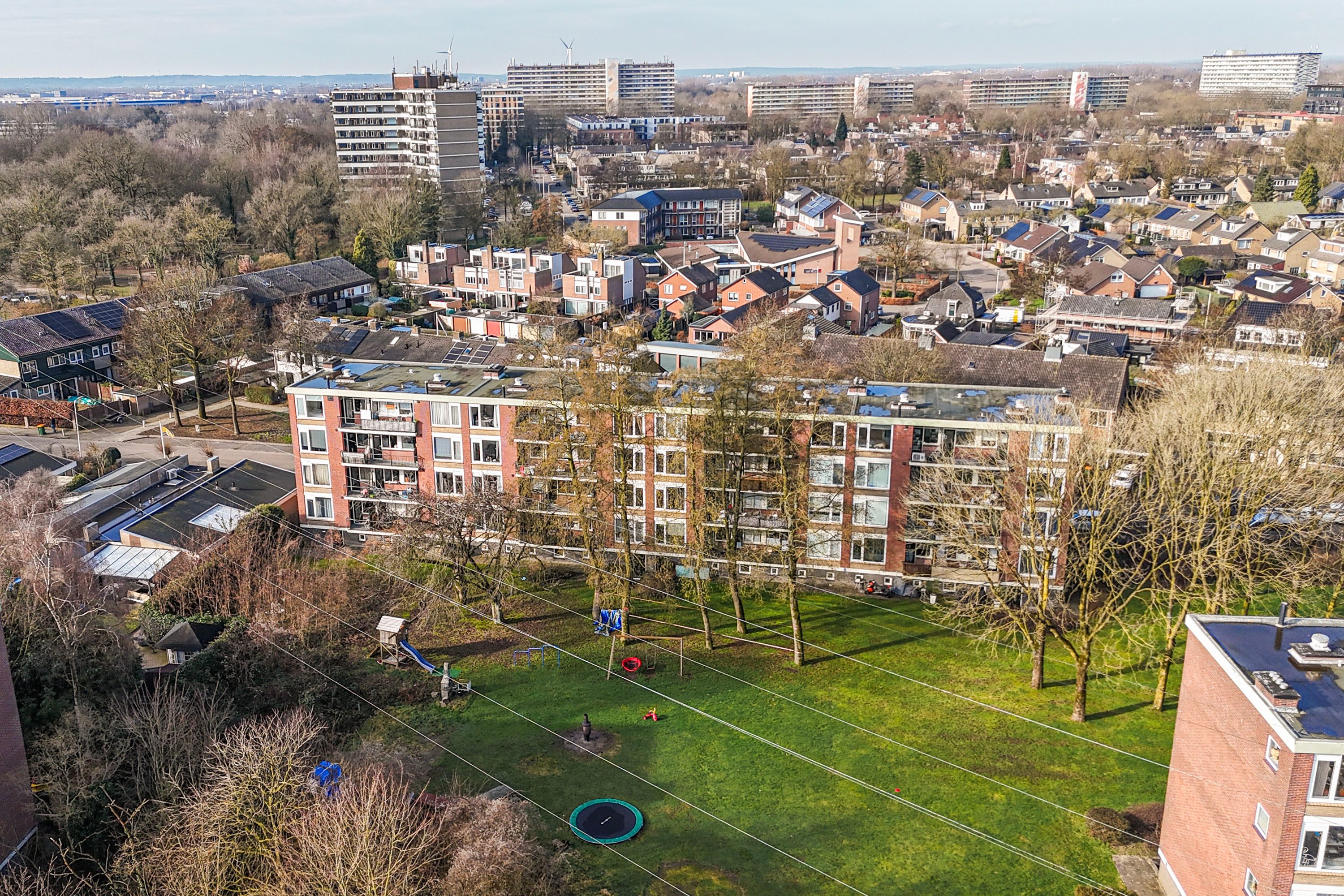 Het appartement ligt in een rustige en prettige woonomgeving. Aan de achterzijde kijk je uit over een groot, afgesloten grasveld dat bij het appartementencomplex hoort en alleen toegankelijk is voor bewoners. Dit maakt het een fijne plek om buiten te ontspannen en biedt kinderen een veilige plek om te spelen.