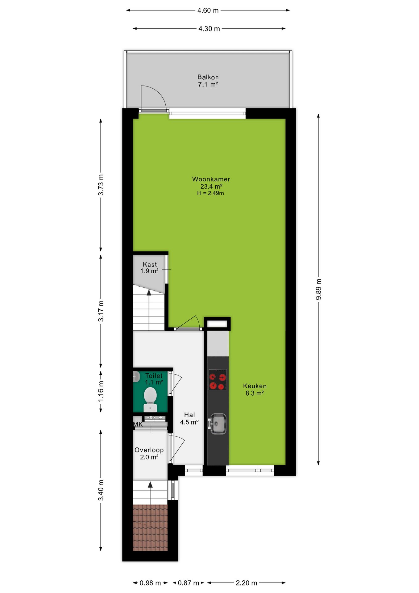 + Lichte woonkamer van 23,4 m²