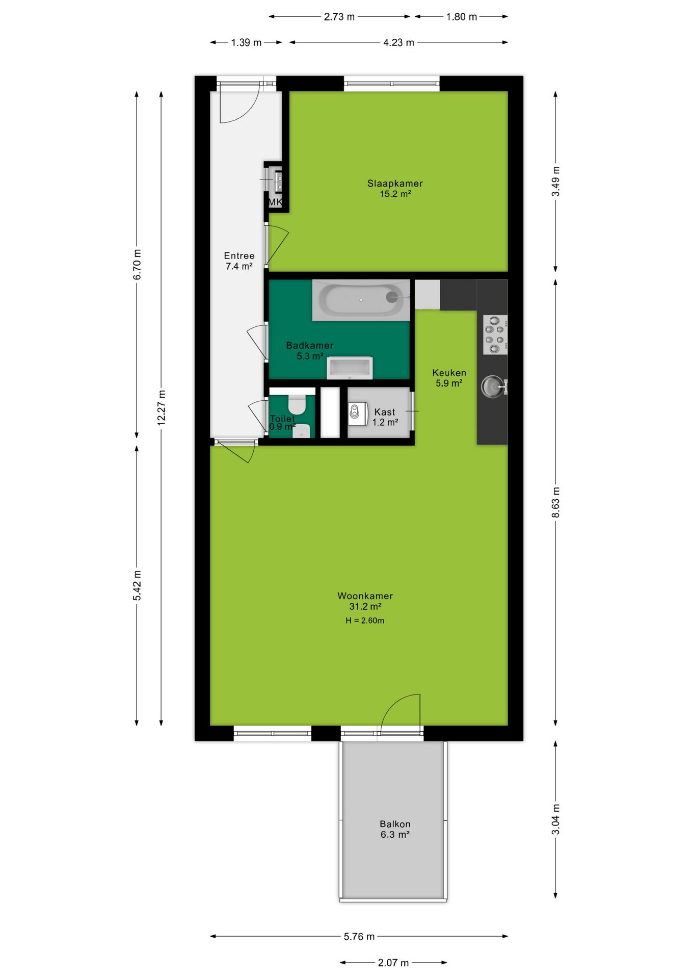 + Royaal tweekamerappartement met 71 m² woonoppervlak