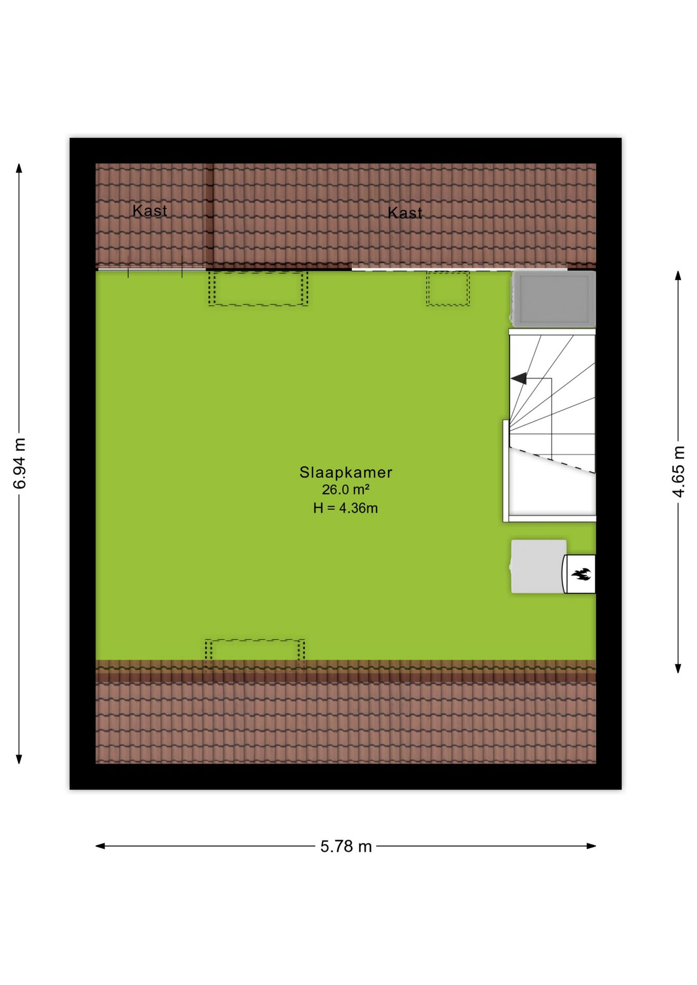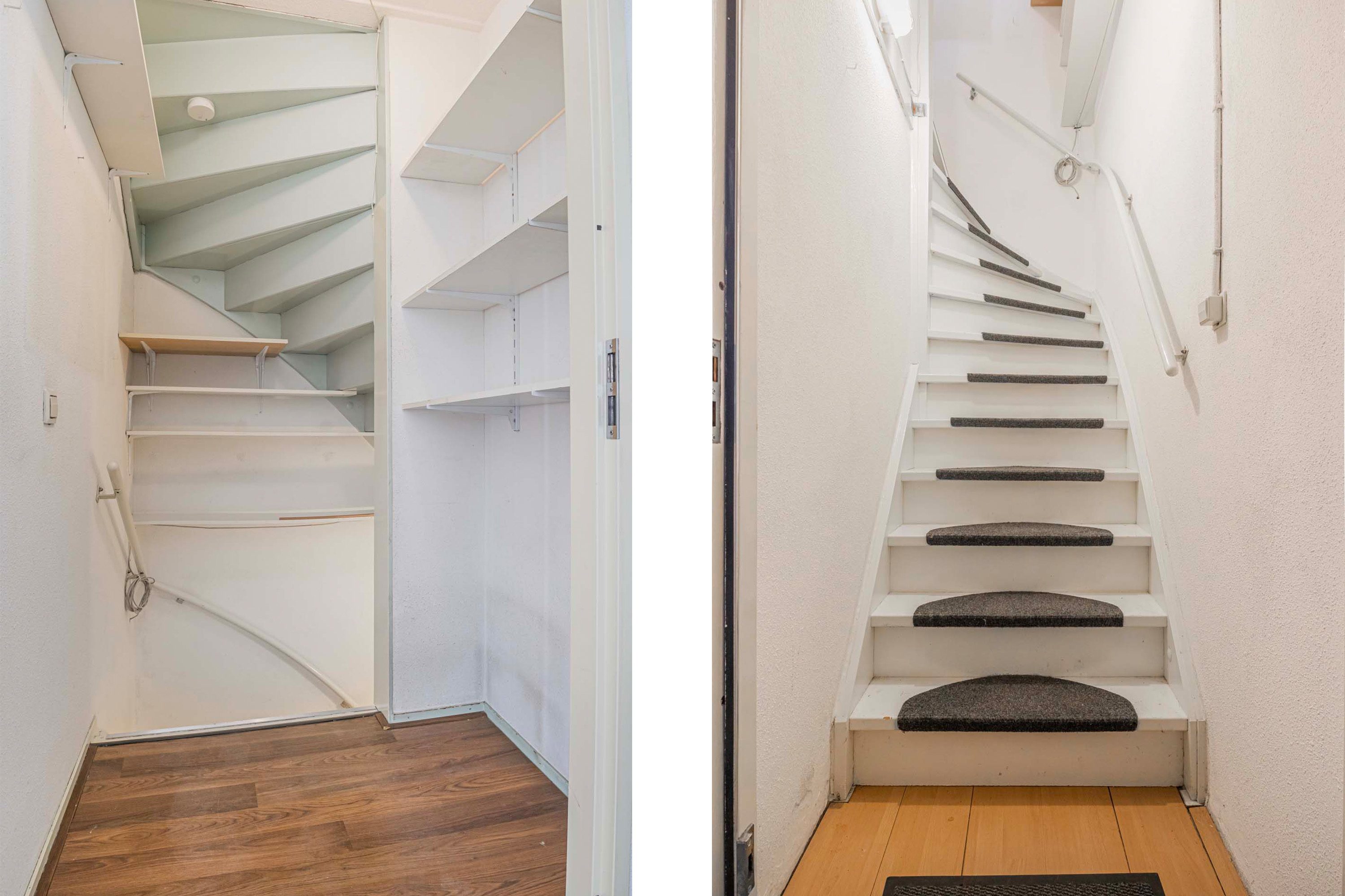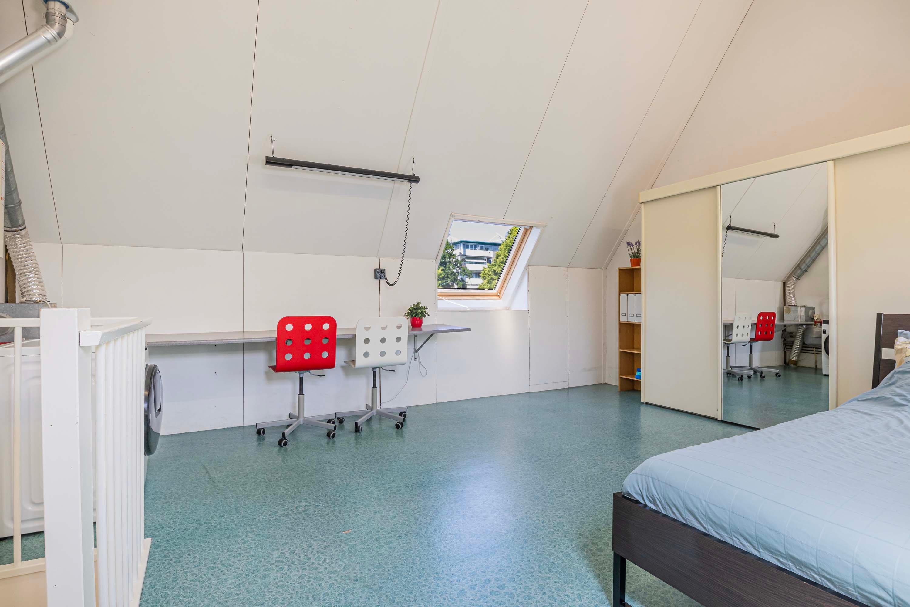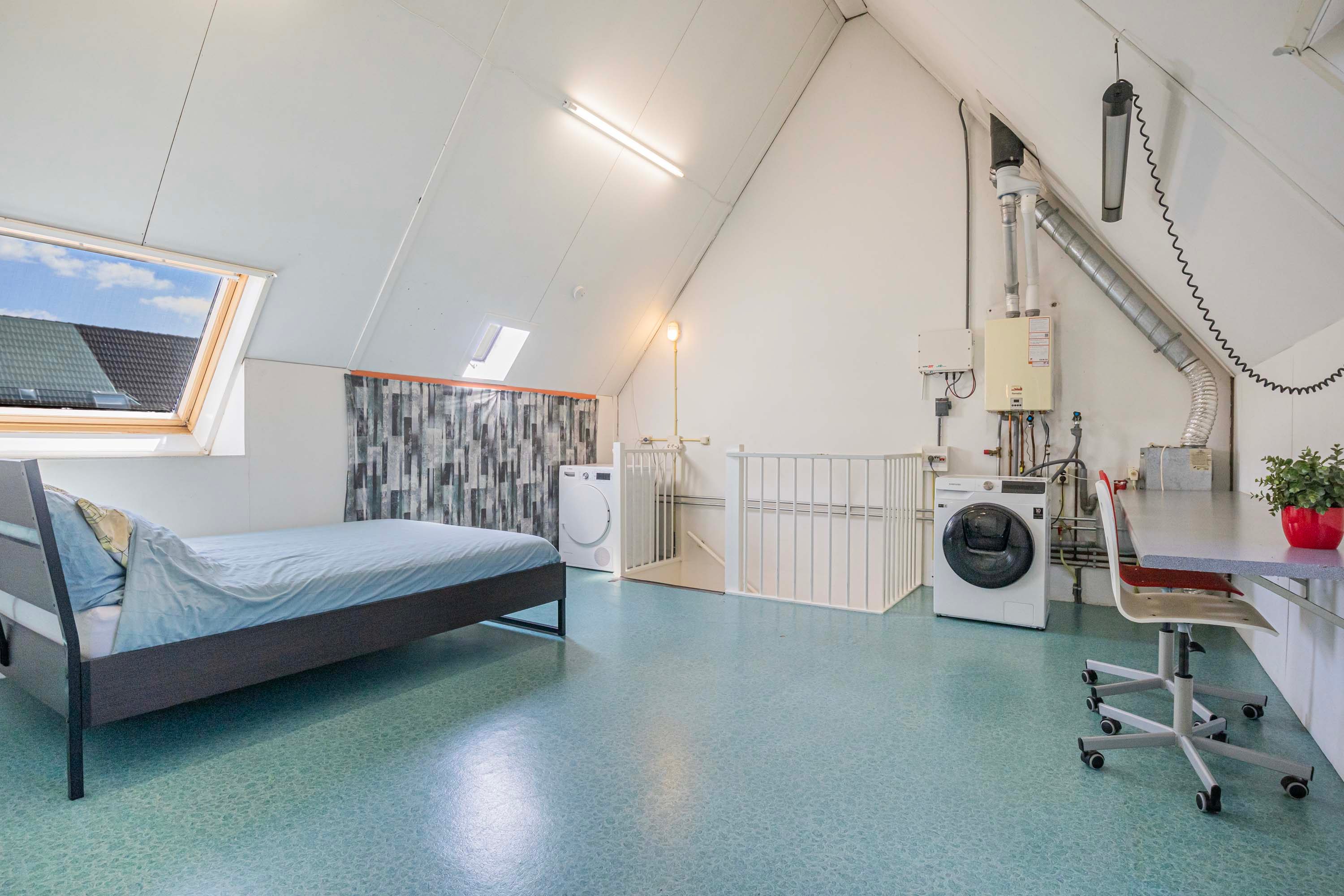De zolder biedt volop mogelijkheden. Deze royale ruimte kun je inrichten als extra slaapkamer, maar is ook perfect te gebruiken als werkplek, hobbyruimte of fitnesskamer. Achter de knieschotten vind je handige opbergruimte voor al je spullen. Daarnaast is hier de cv-ketel geplaatst en een wasmachineaansluiting te vinden.