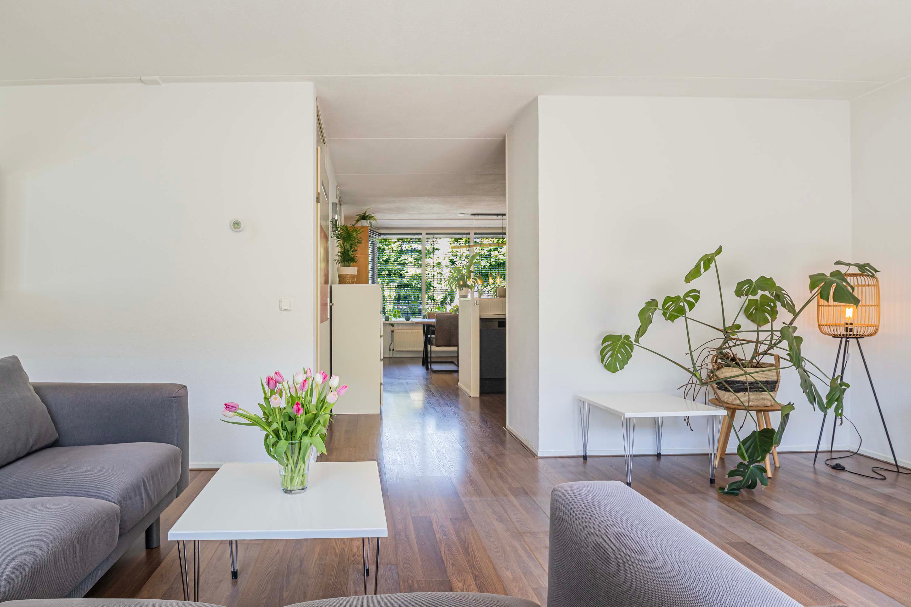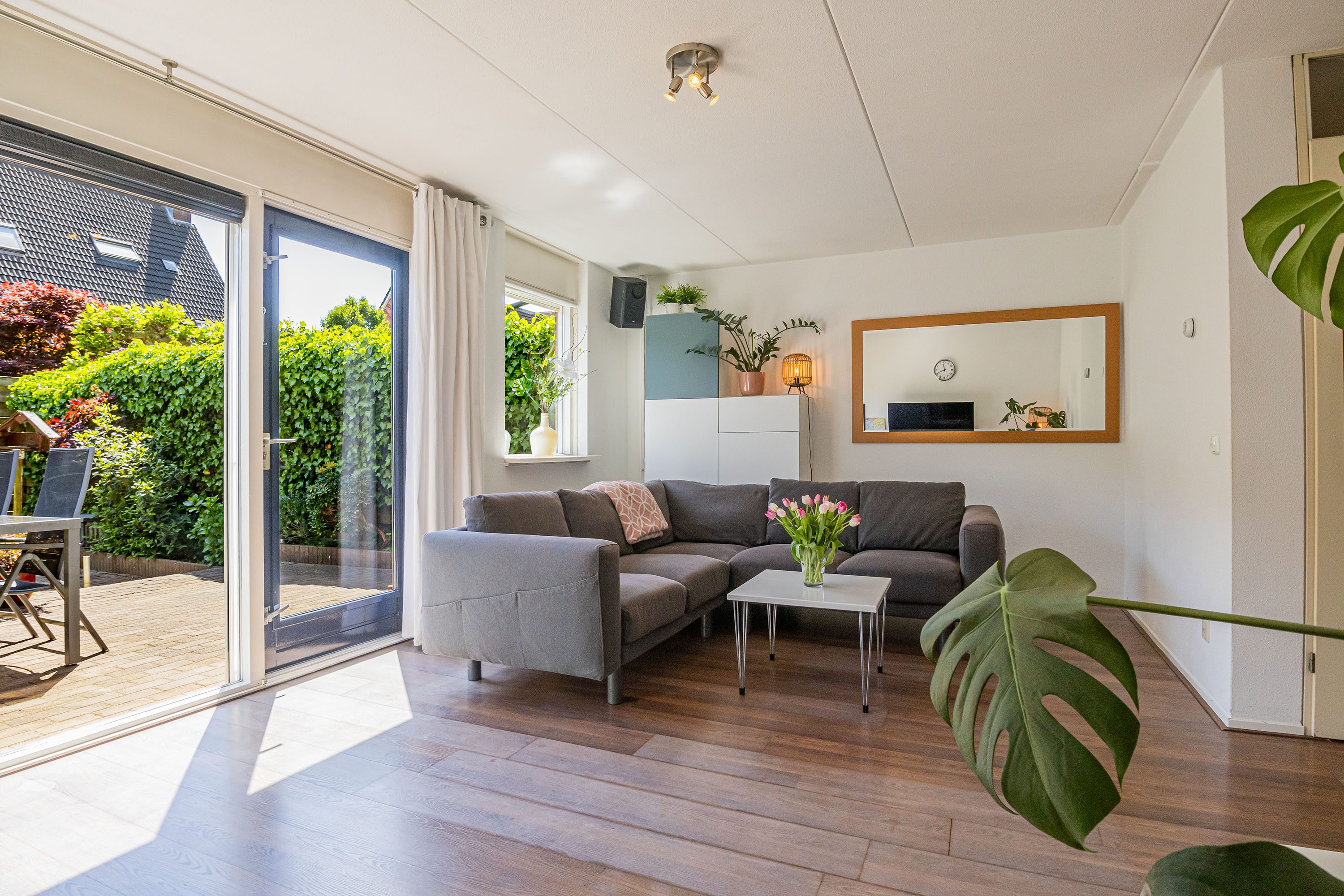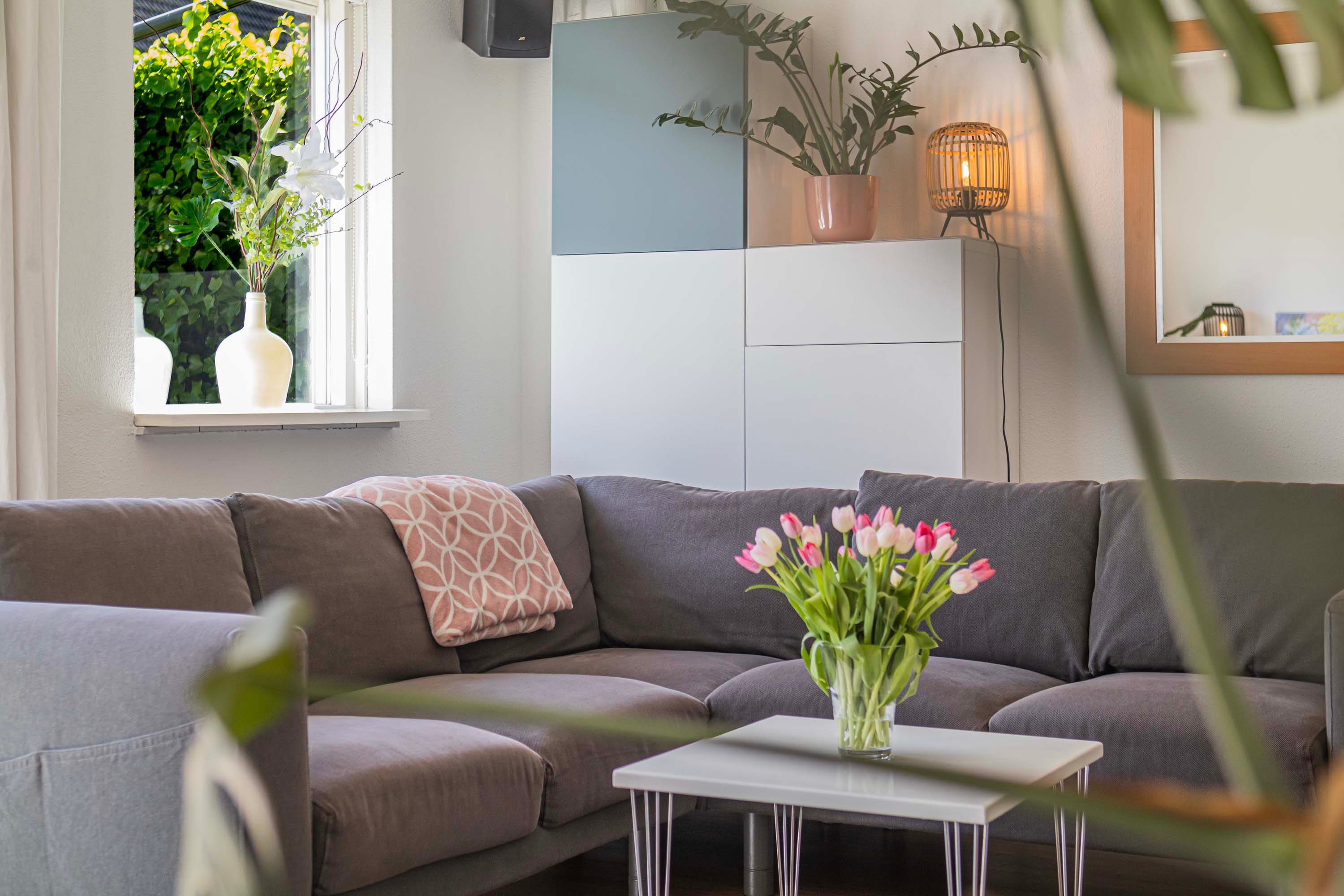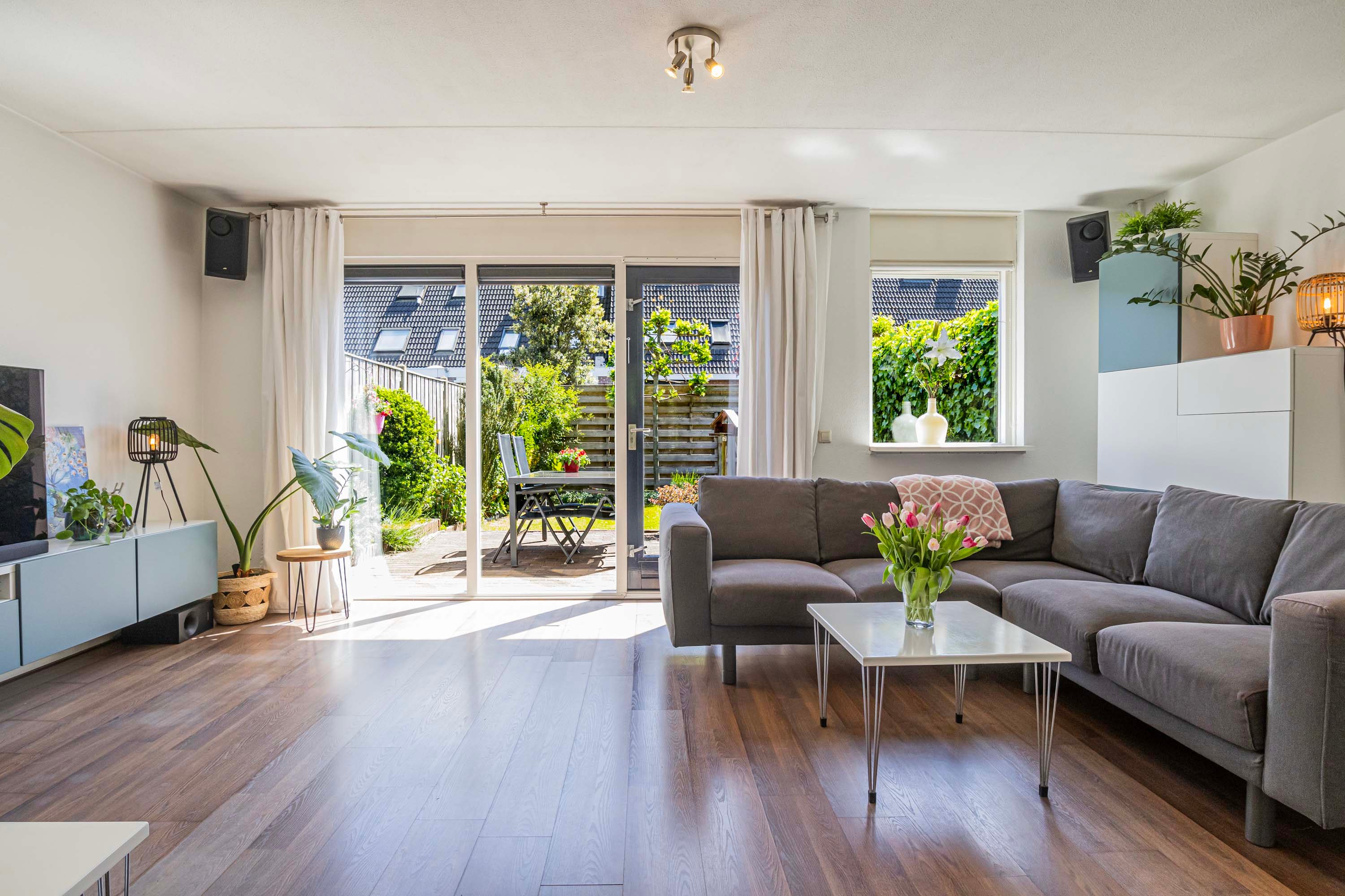 Aan de achterzijde van de woning vind je de sfeervolle woonkamer, waar je vanaf de bank fijn uitkijkt op de tuin.