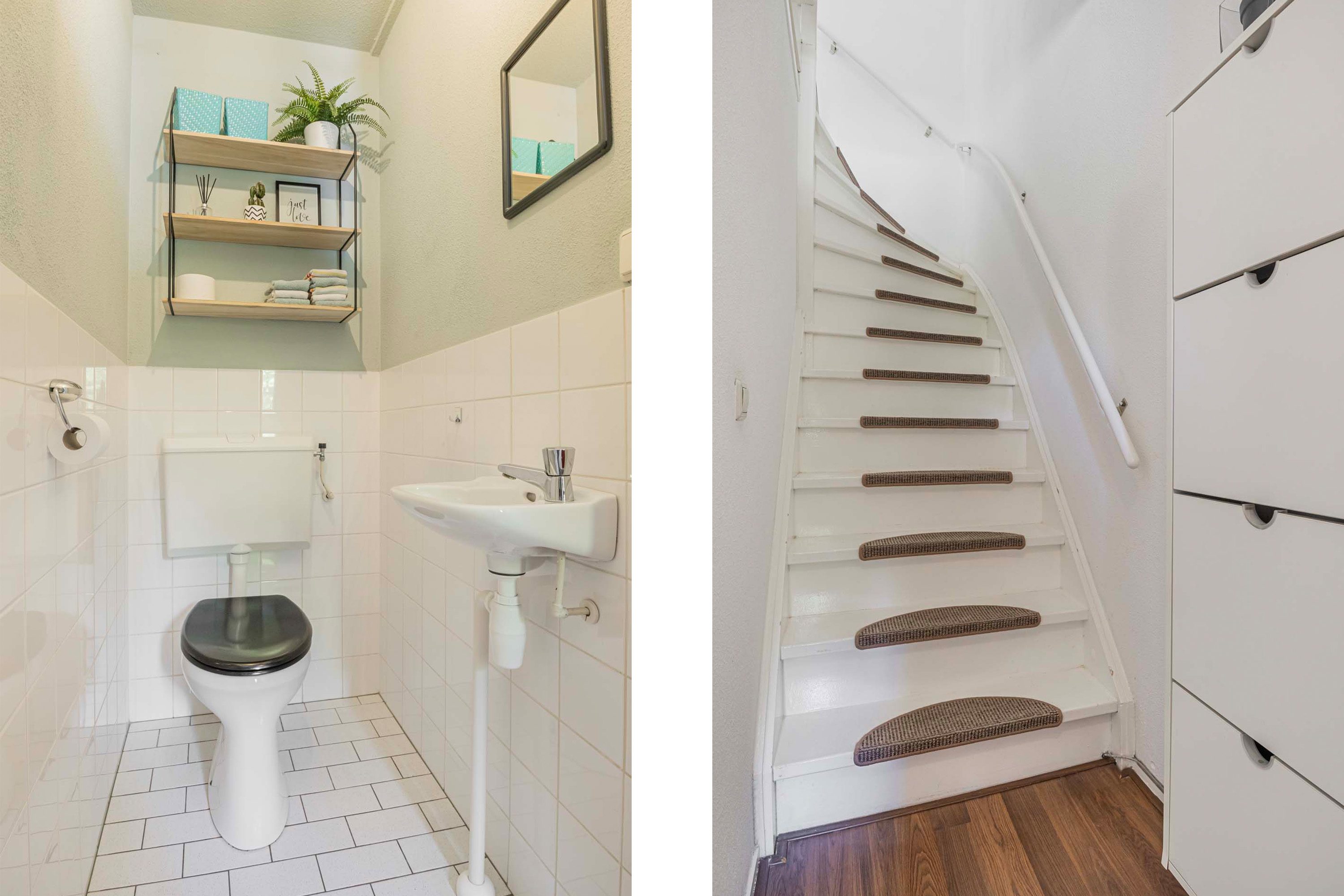 Voordat je de trap op gaat naar de eerste verdieping, vind je op de begane grond nog een apart toilet.
