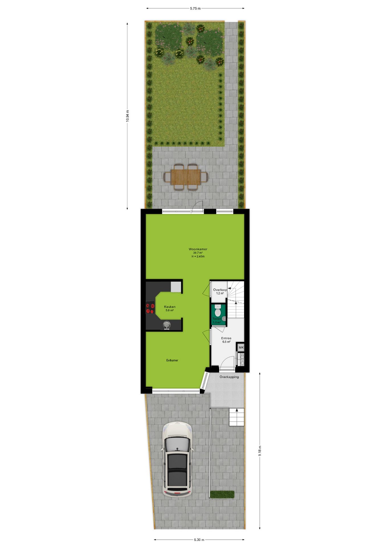 En vergeet de ruime garage onder het huis niet! Een geweldige extra, waar je niet alleen je auto kunt parkeren, maar ook volop ruimte hebt voor opslag. Extra handig: via de trap loop je zo je huis in.