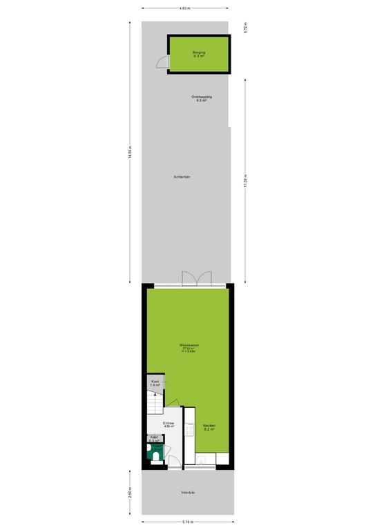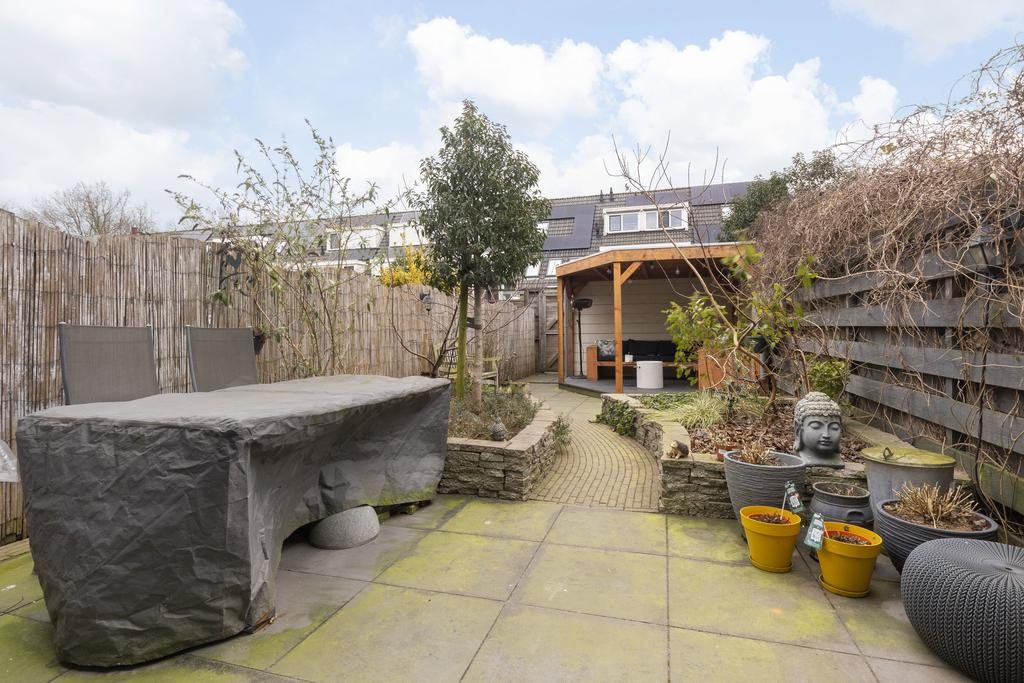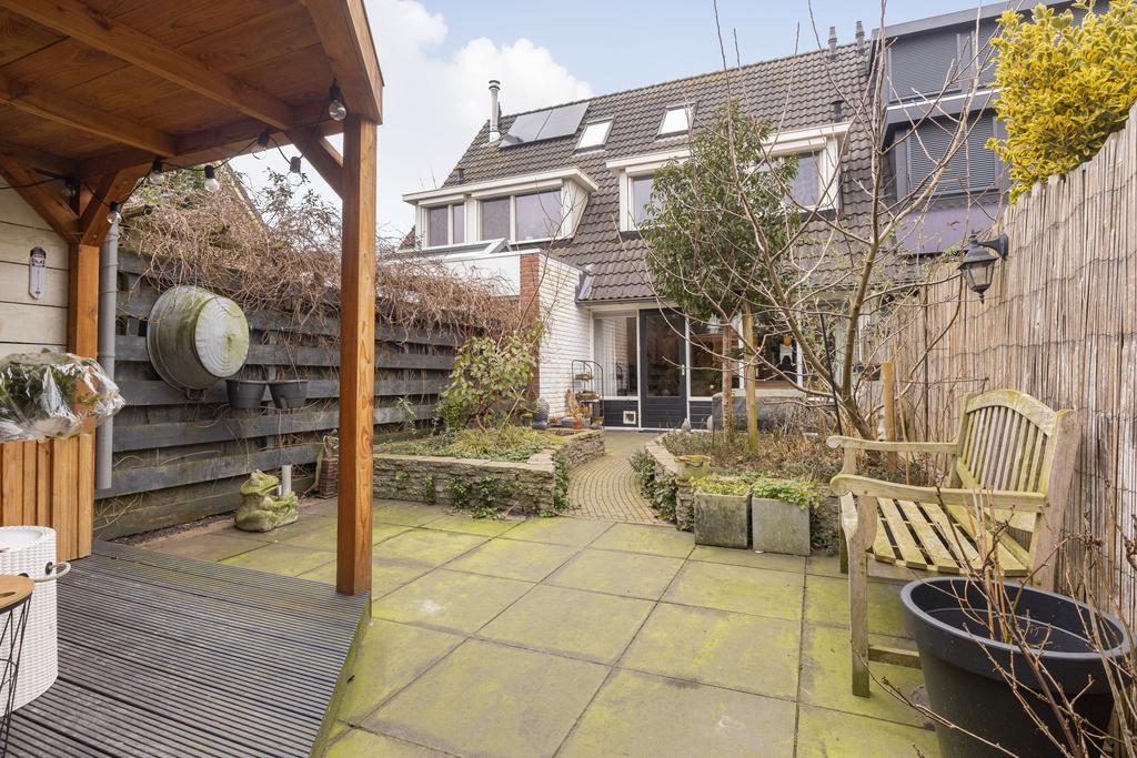 Via de deur in de woonkamer stap je de verzorgde tuin in. Deze is netjes aangelegd en biedt direct achter de woning een terras waar je kunt ontspannen. Verder naar achteren in de tuin vind je de veranda, een beschutte plek om te zitten. Achter de veranda is de berging, perfect voor het opbergen van tuingereedschap en fietsen. Bovendien is de woning ook bereikbaar via een achterom.