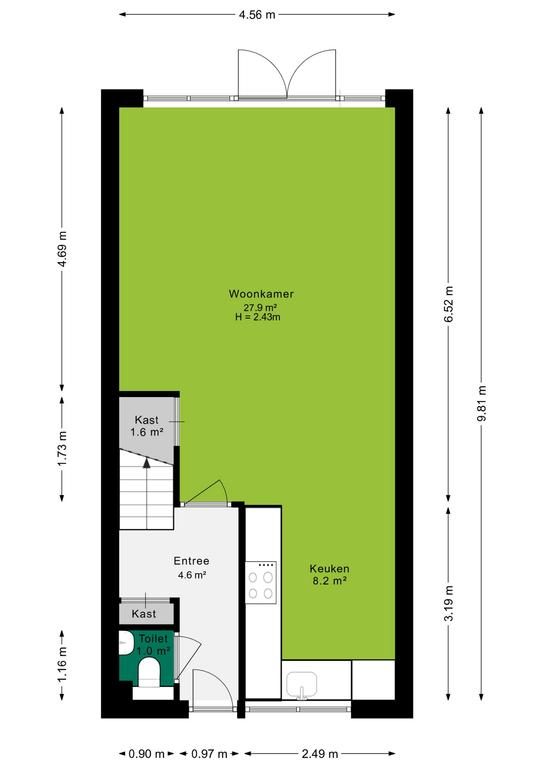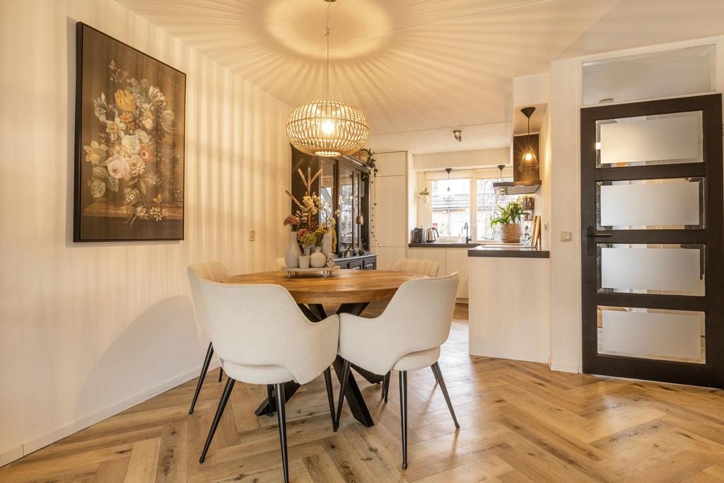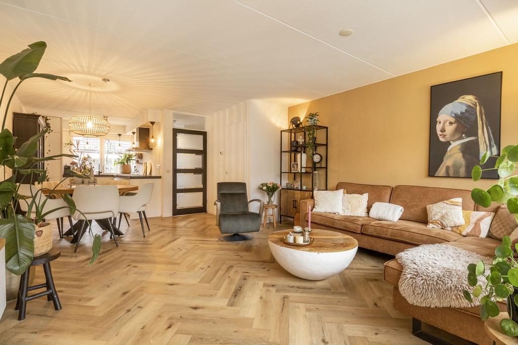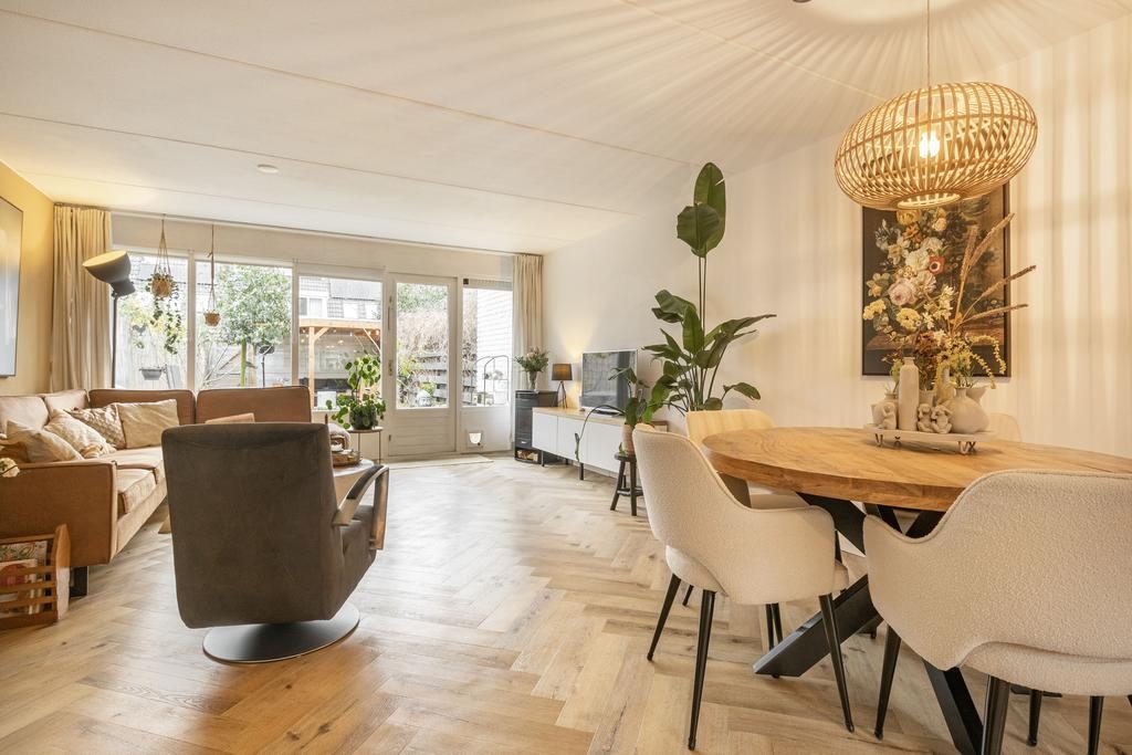 De woonkamer, met een oppervlakte van ongeveer 28 m², is een lichte en uitnodigende ruimte. Dankzij de grote raampartijen stroomt er volop natuurlijk licht naar binnen, wat bijdraagt aan een aangename sfeer. Via de openslaande deur heb je direct toegang tot de tuin, waardoor je gemakkelijk van het buitenleven kunt genieten.