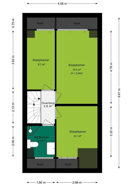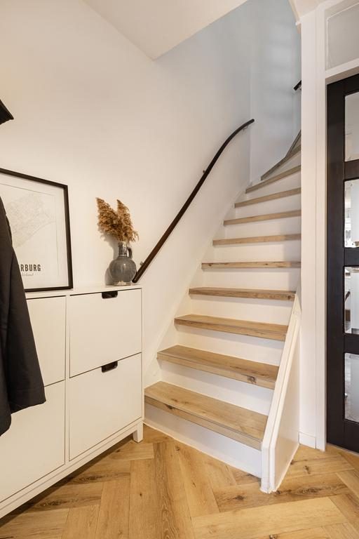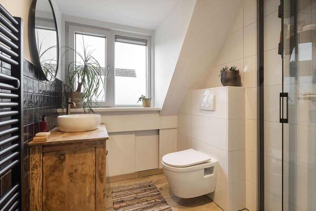 Op de overloop vind je toegang tot drie ruime slaapkamers, elk met voldoende ruimte en mogelijkheden voor persoonlijke inrichting. De moderne badkamer is stijlvol en praktisch ingericht, voorzien van een douche, toilet, wastafelmeubel en een designradiator voor extra comfort.
