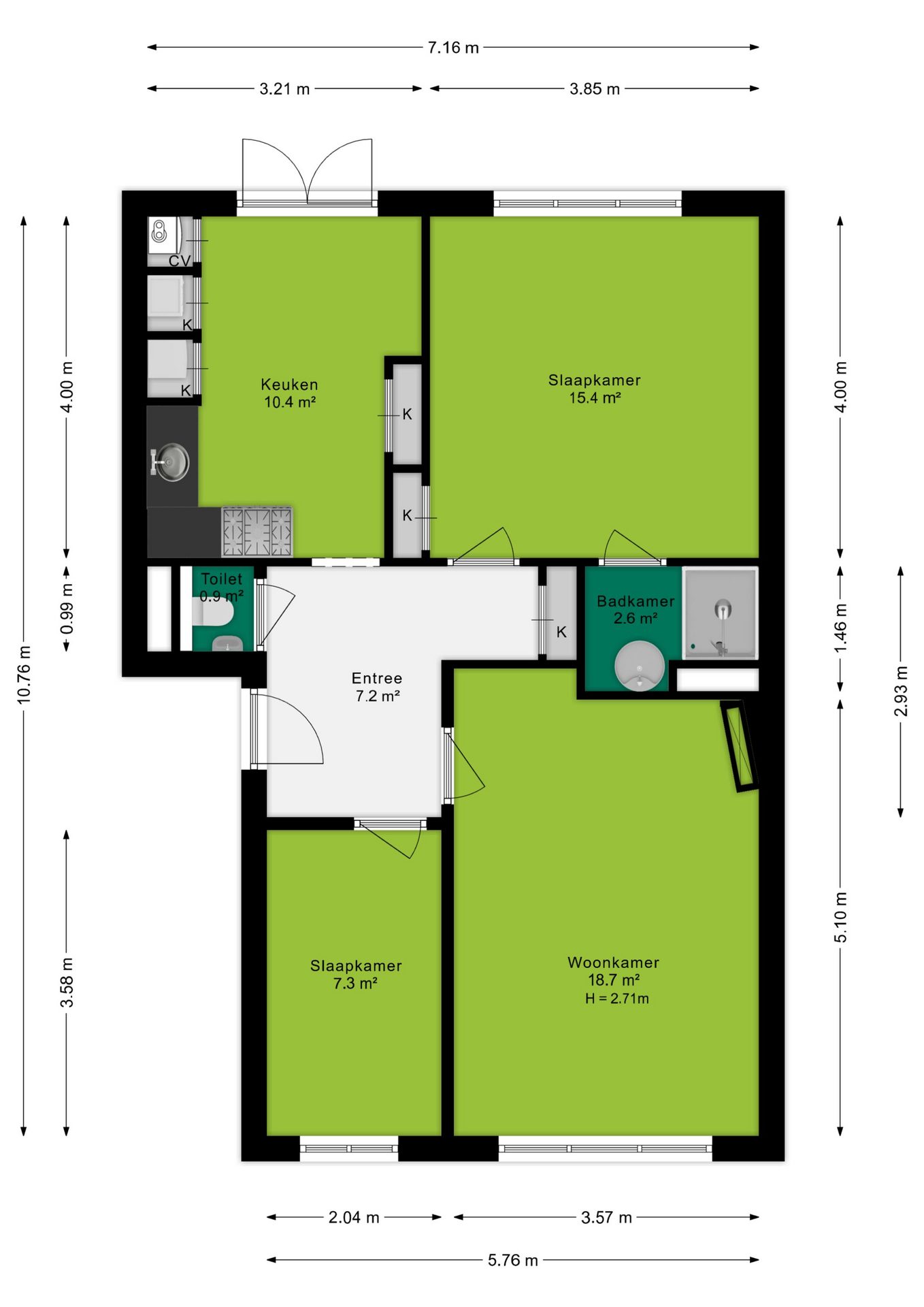 + Parkeren op eigen terrein voor het appartement (voor 2 auto's)