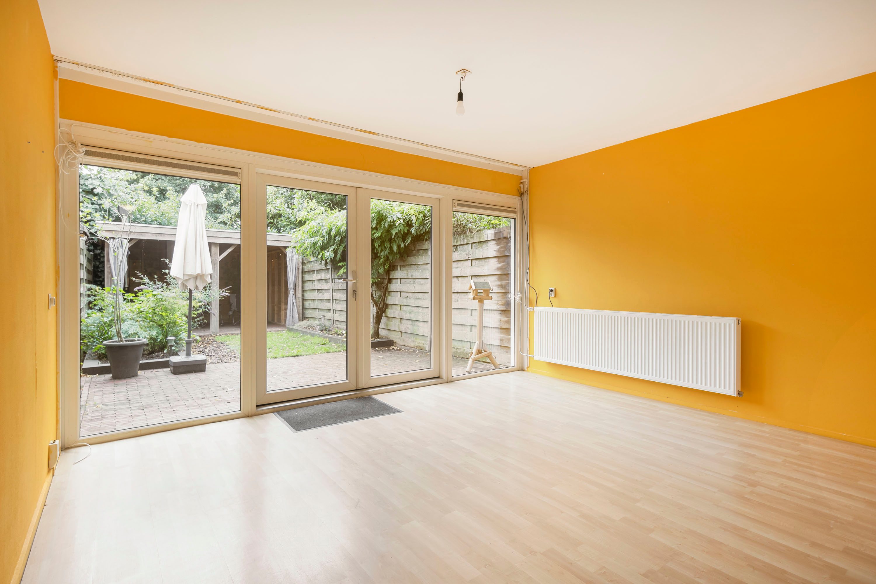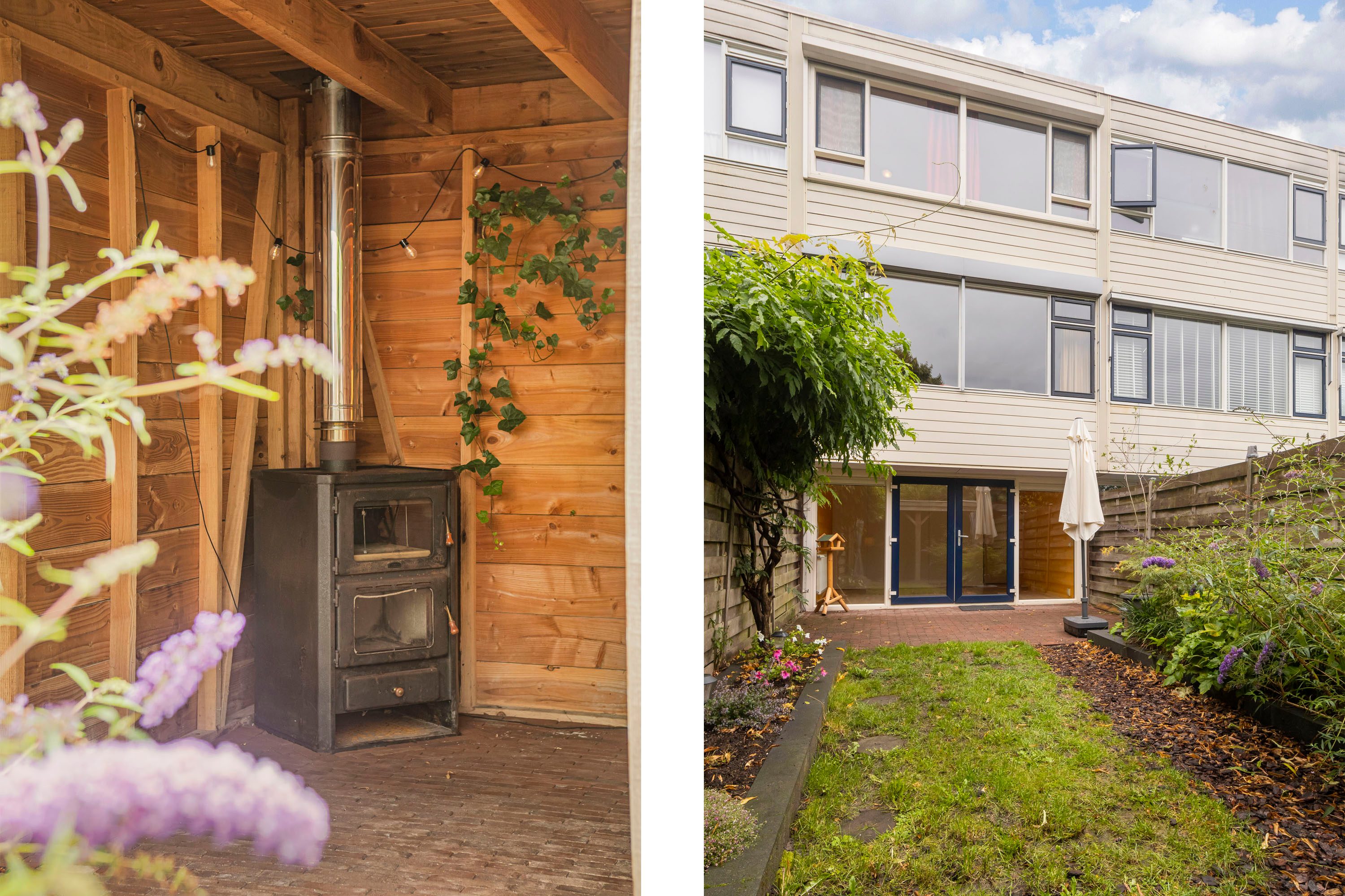 De tuin is een groot pluspunt: gelegen op het zuiden, ca. 10 meter diep en 5 meter breed, met een heerlijk zonnige ligging. Achterin de tuin is een veranda geplaatst met sfeervolle houtkachel – perfect om in elk seizoen buiten te kunnen zitten.