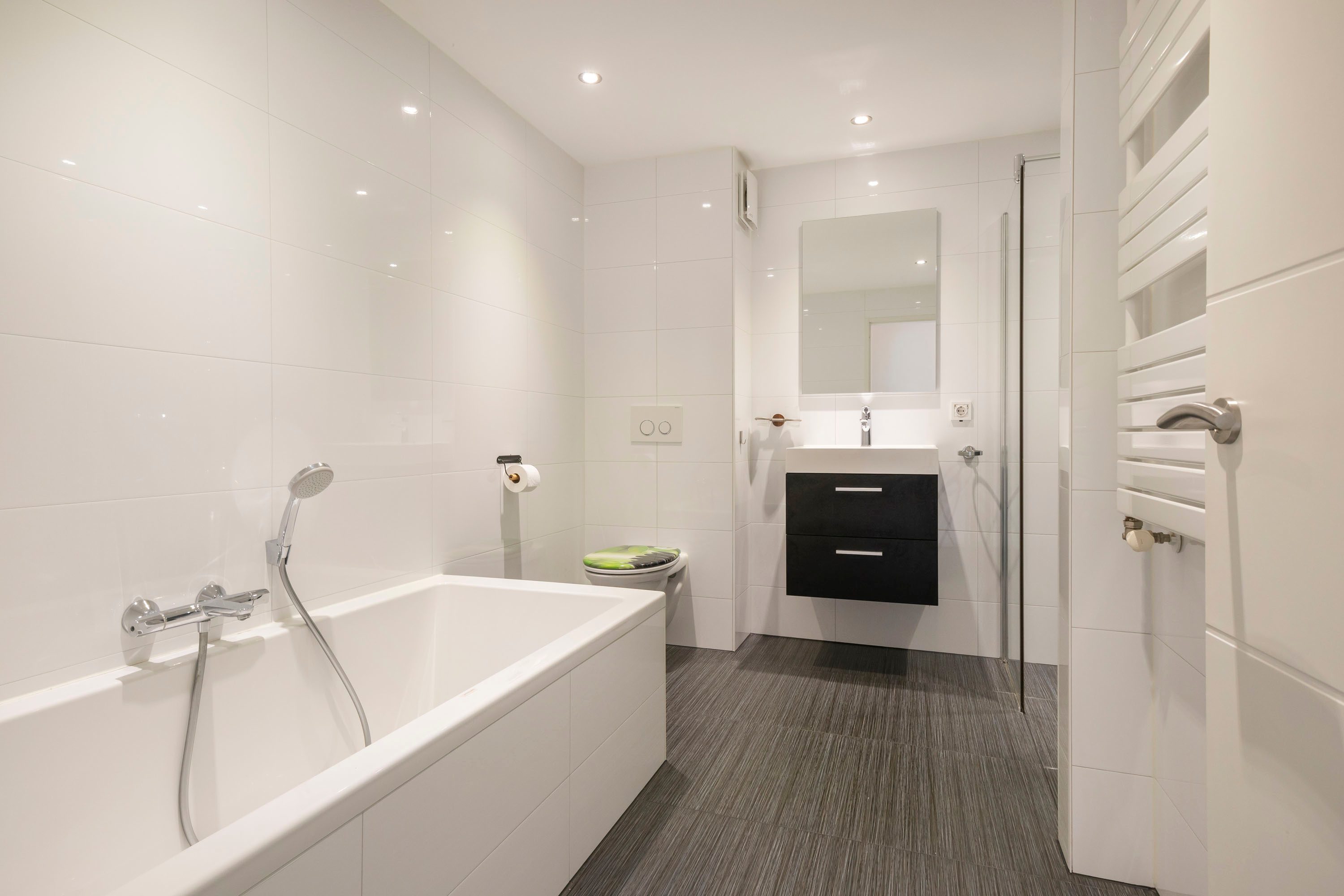 Hier bevinden zich nog drie slaapkamers van ca. 15 m², 10 m² en 8 m². In de slaapkamer van 10 m² bevindt zich een kast met de cv-ketel. De badkamer is netjes en voorzien van een ligbad, inloopdouche, toilet en wastafel met meubel.