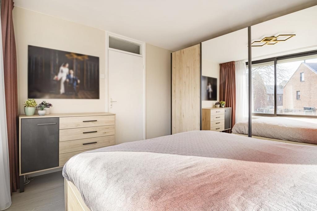 De hoofdslaapkamer bevindt zich aan de voorzijde van de woning en is uitgerust met elektrisch rolluik.
