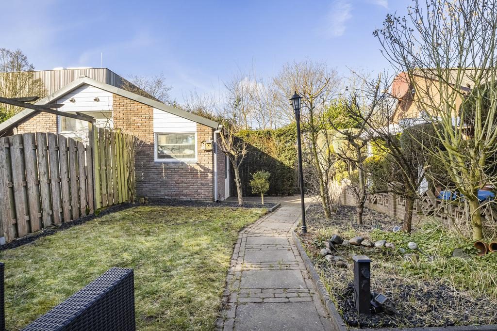 De achtertuin is op het zonnige zuidwesten gesitueerd. Beschikt over een berging en een achterom.