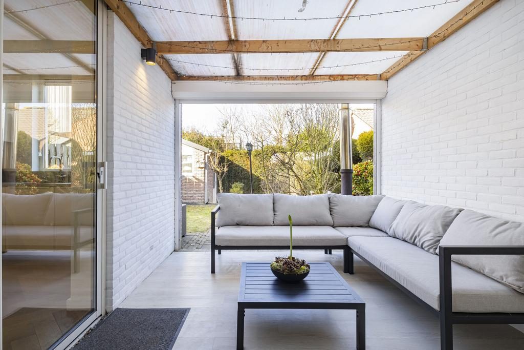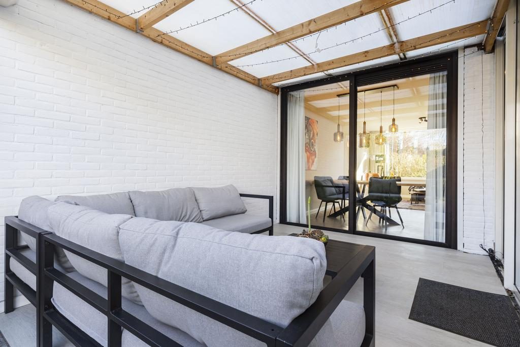 De veranda is een prettig verlengstuk van de woning en vanuit hier is er leuk zicht op de tuin. Het geheel is door middel van rolluiken volledig af te sluiten.