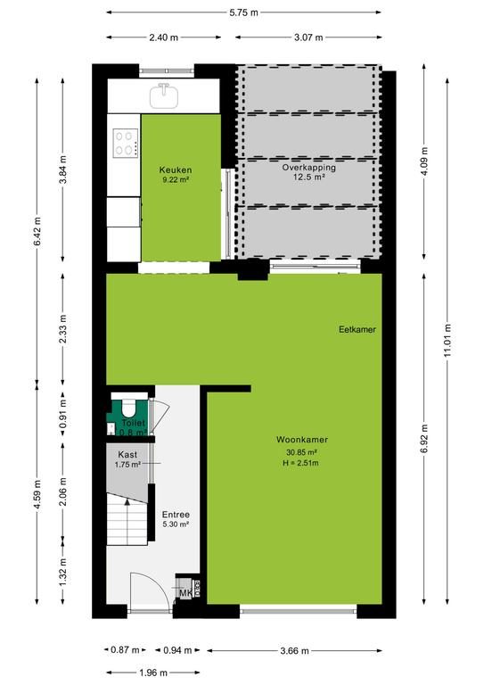 Woon- eetkamer 30.8 m²