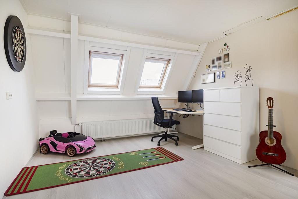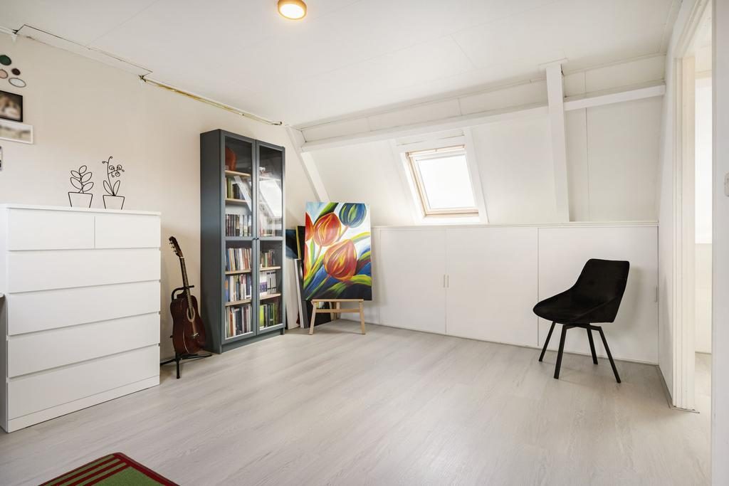 Verder is hier een vierde slaapkamer aanwezig die is voorzien van drie Veluxdakramen, Agnes platenplafond en veel bergruimte achter de knieschotten.
