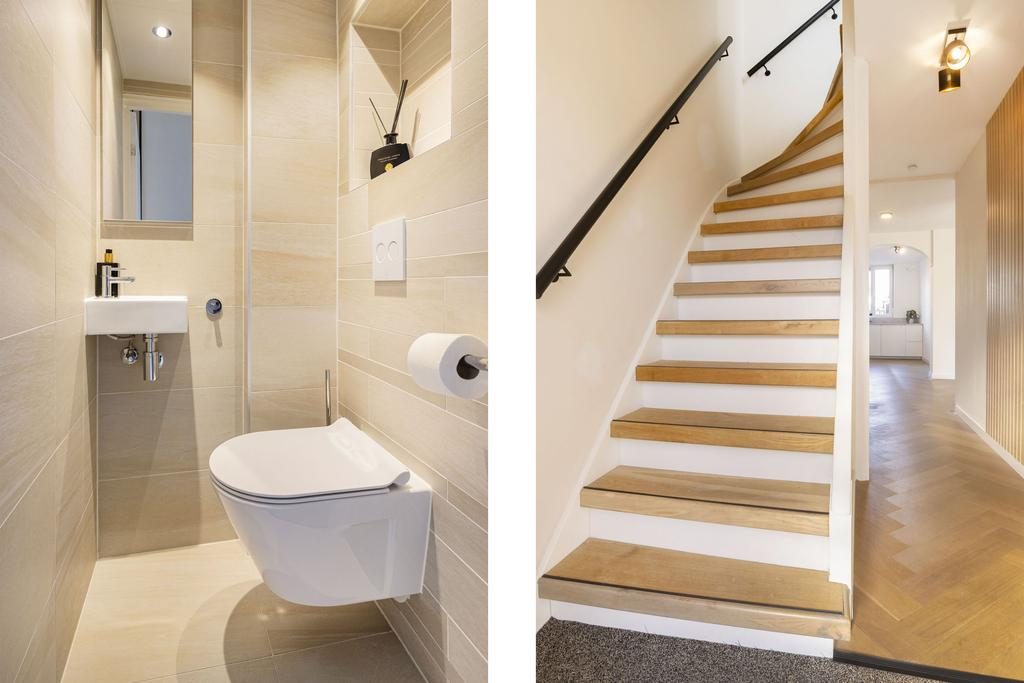 Verder is er een separate luxe toiletruimte die recent vernieuwd is met wandcloset, fonteintje en voorzien van fraaie wand- en vloertegels.