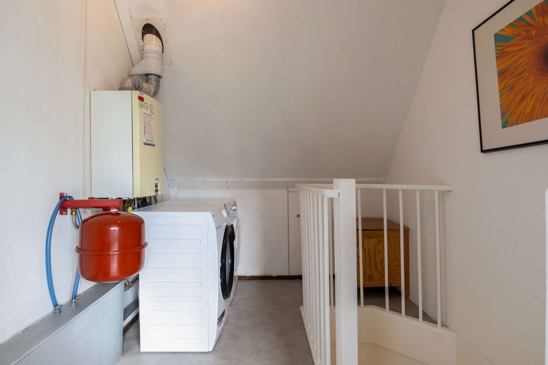 Op de overloop vind je aansluitingen voor zowel de cv-installatie als voor de wasmachine en droger. De ruime derde ouderslaapkamer is bijzonder licht dankzij de vele raampartijen, die zorgen voor een aangename en heldere sfeer in de kamer.