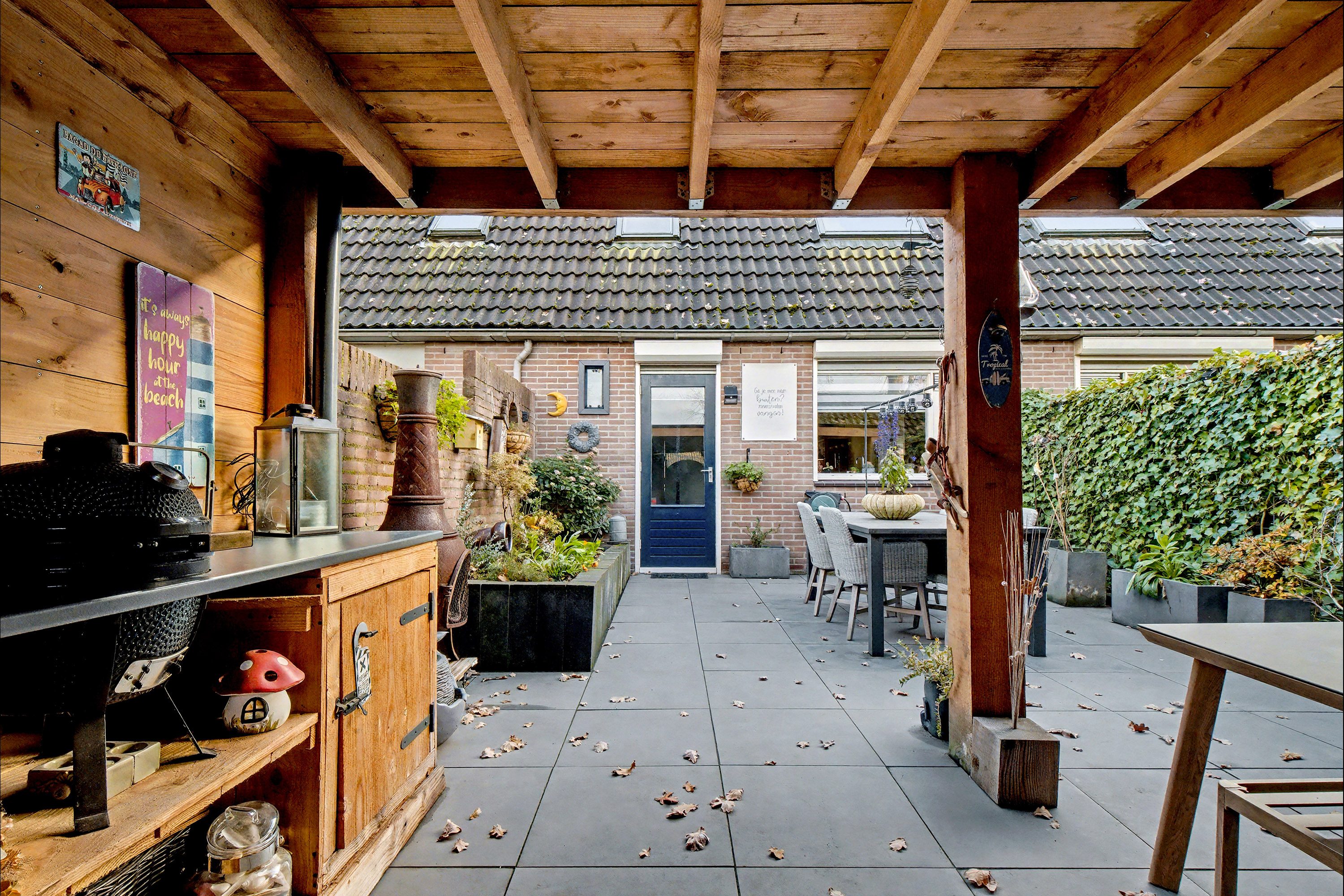 De fraai aangelegde tuin van 52 m², bereikbaar via de hal, ligt op het noorden en biedt daarmee heerlijke middag- en avondzon. Achterin vind je een veranda, ideaal voor een luxe loungehoek waar je tot laat kunt genieten van het buitenleven. Daarnaast is er volop ruimte voor een speelplek voor de kinderen of een extra zitgedeelte. De tuin is bovendien voorzien van een praktische achterom.