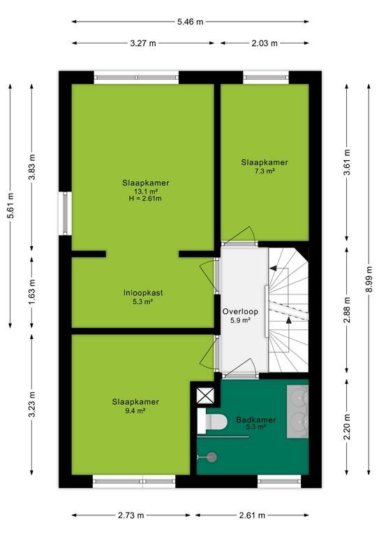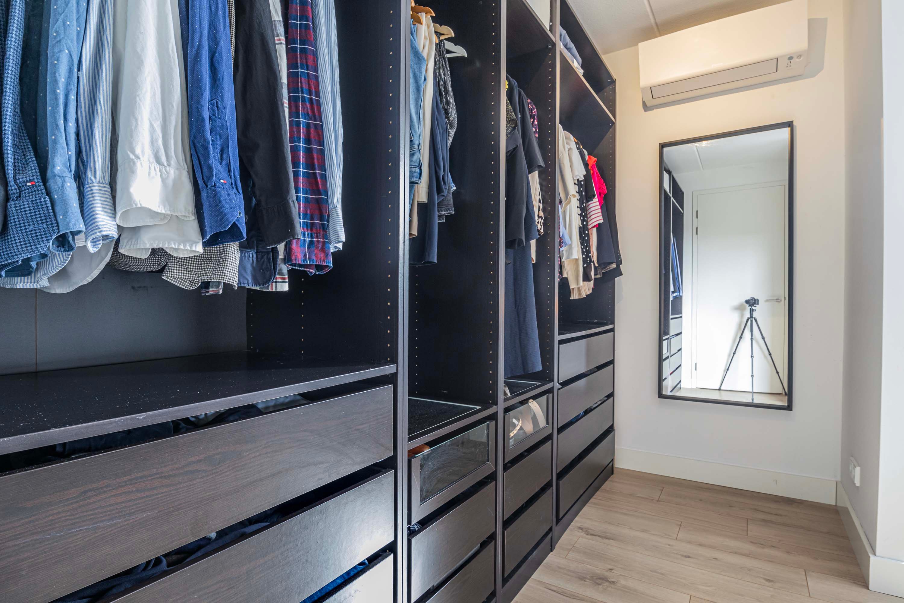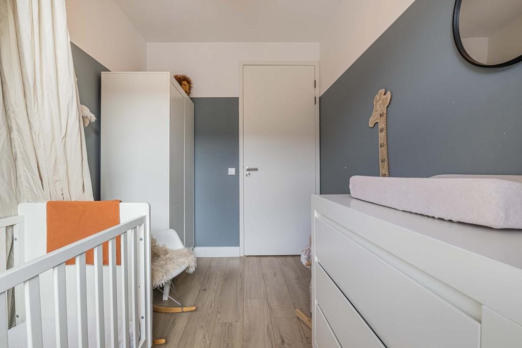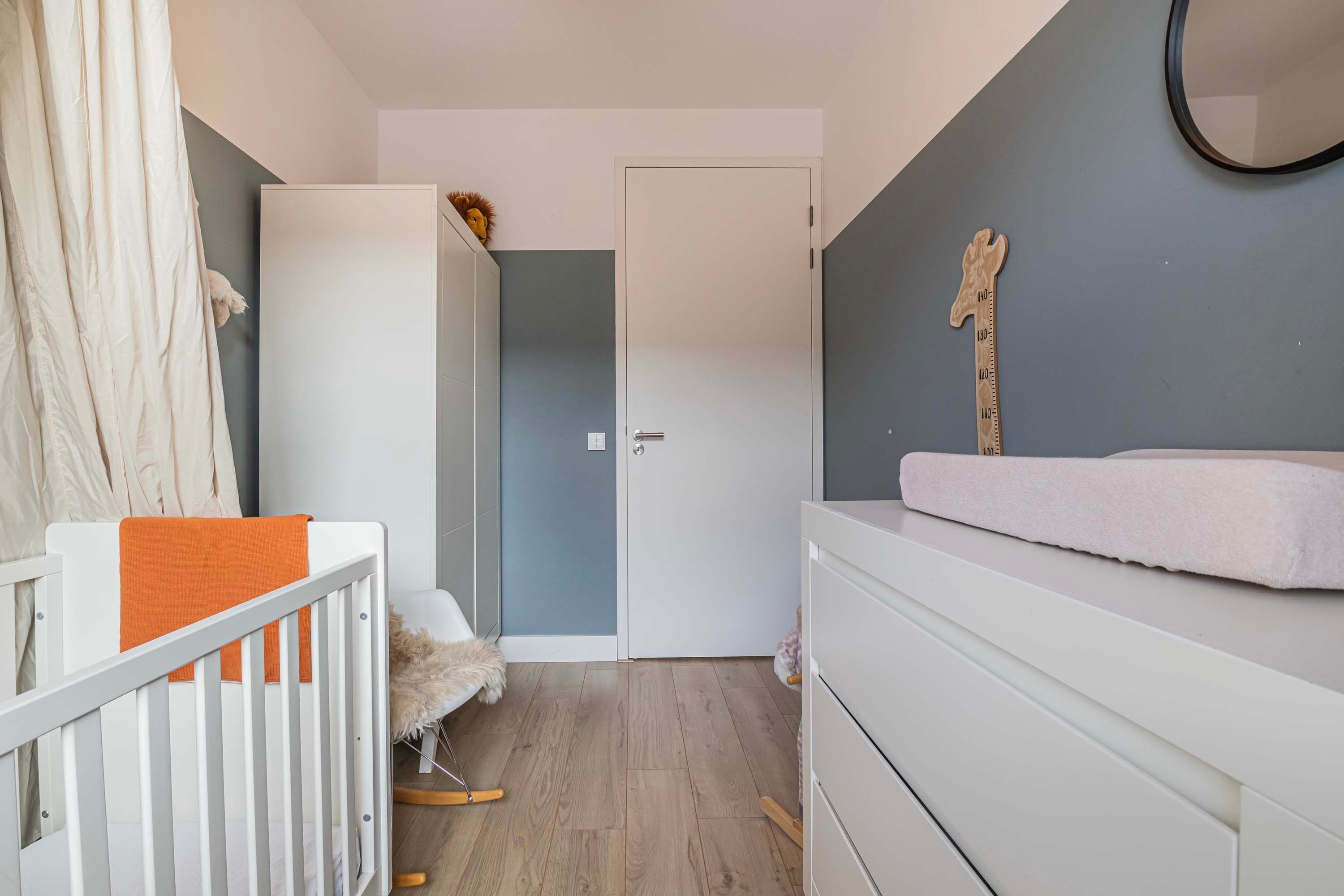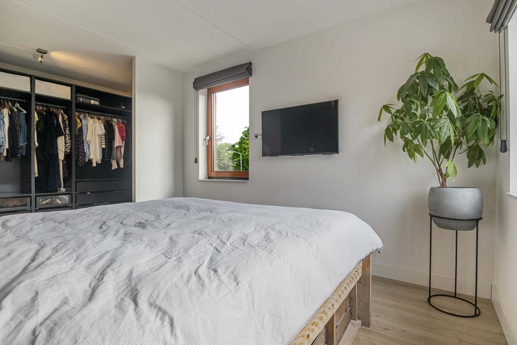 Op de eerste verdieping bevindt zich een overloop, drie slaapkamers en een moderne badkamer. Een ruime slaapkamer aan de voorzijde van circa 10 m², een kleinere slaapkamer aan de achterzijde van circa 7 m² en een royale ouderslaapkamer van circa 18 m² met grote ramen die zorgen voor veel daglicht. Deze slaapkamer is tevens voorzien van een inloopkast en airconditioning. De moderne badkamer beschikt over een inloopdouche, een toilet en een dubbele wastafel met eikenhouten meubel.