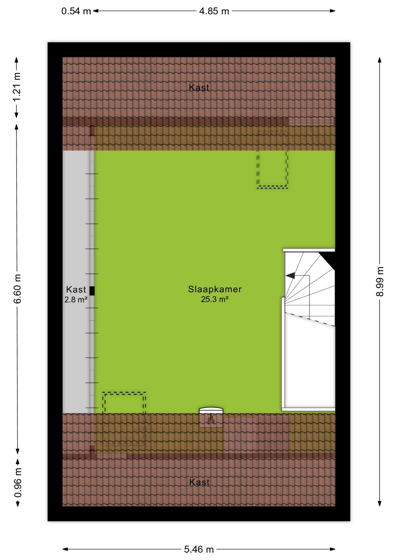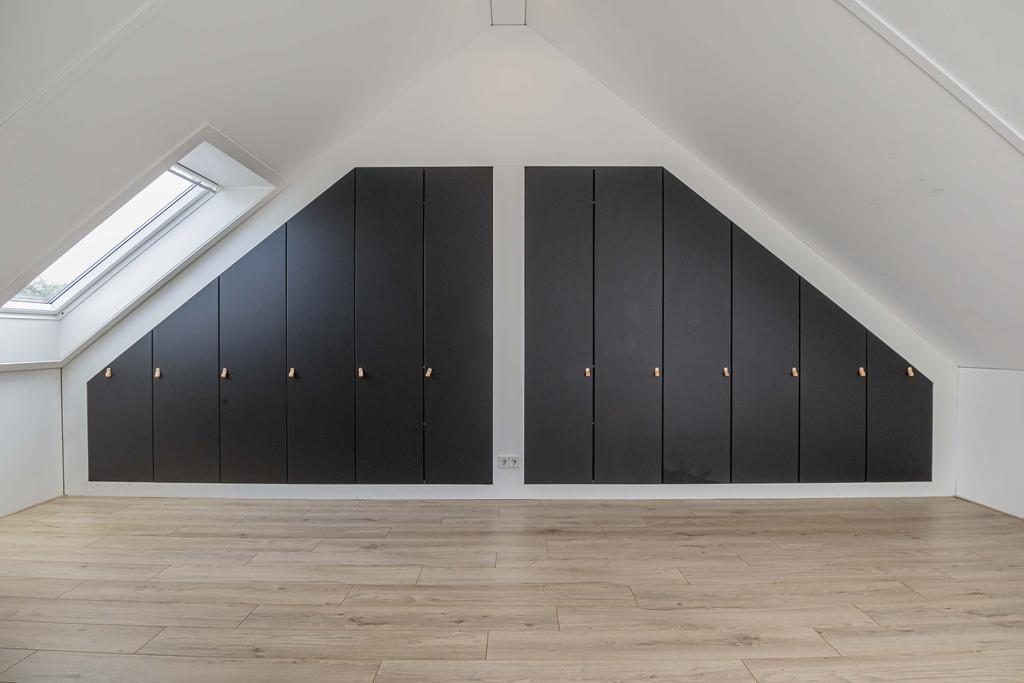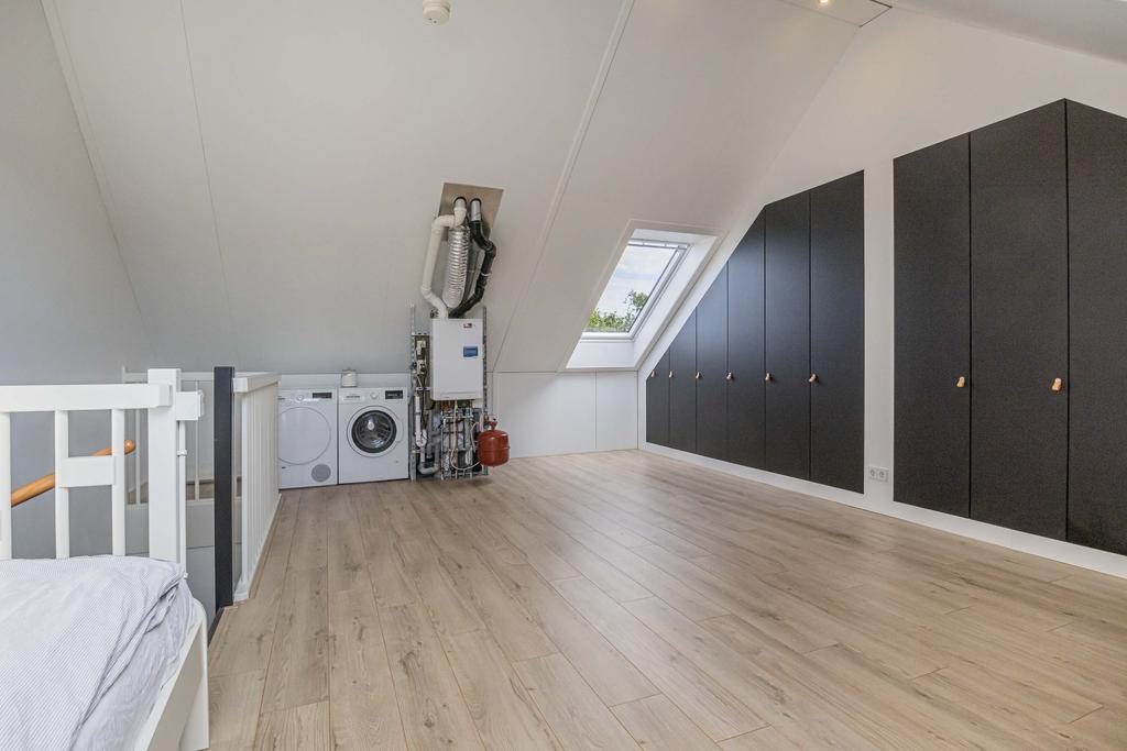 De ruime tweede verdieping biedt mogelijkheid tot het maken van twee extra (slaap)kamers. De ruimte heeft twee grote kunststof dakramen die zorgen voor veel licht. Aan de achterwand bevindt zich over de volle breedte een grote opbergkast.