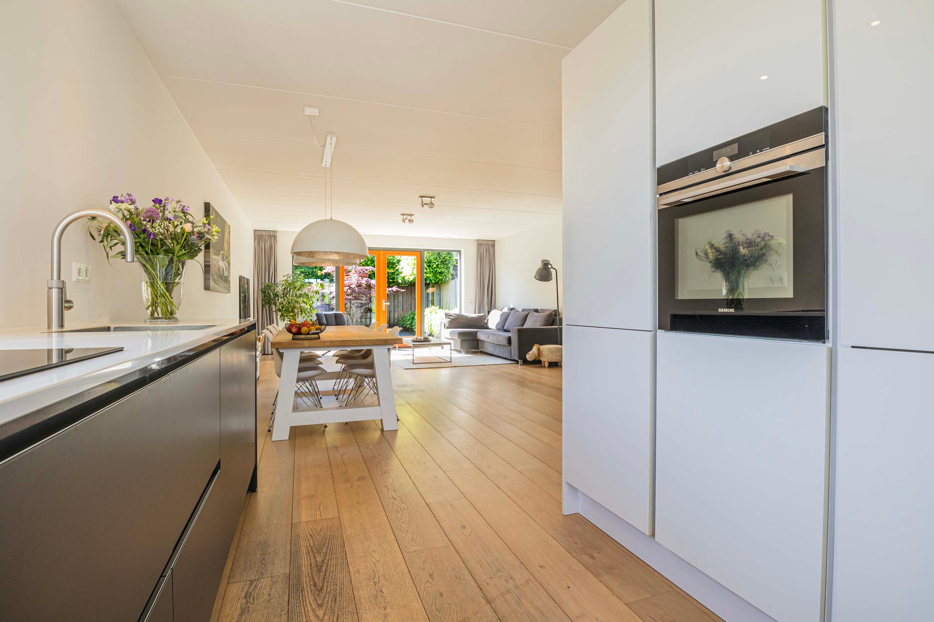 De woning is gebouwd in 2016. Op de begane grond bevindt zich een ruime woonkamer met veel lichtinval en een moderne keuken, voorzien van diverse inbouwapparatuur zoals een inductiekookplaat, combi-oven, vaatwasser en koel-vriescombinatie. Via openslaande deuren bereik je het terras en mooie, onder architectuur aangelegde tuin, waar je kunt genieten van privacy en rust. De gehele begane grond en eerste verdieping zijn voorzien van vloerverwarming, wat zorgt voor extra comfort.