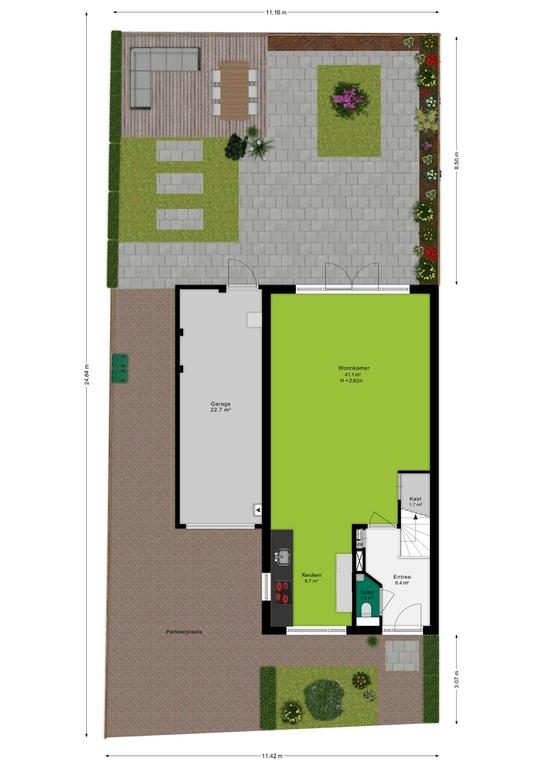 + Brede oprit met laadpaal en plek voor twee auto’s;