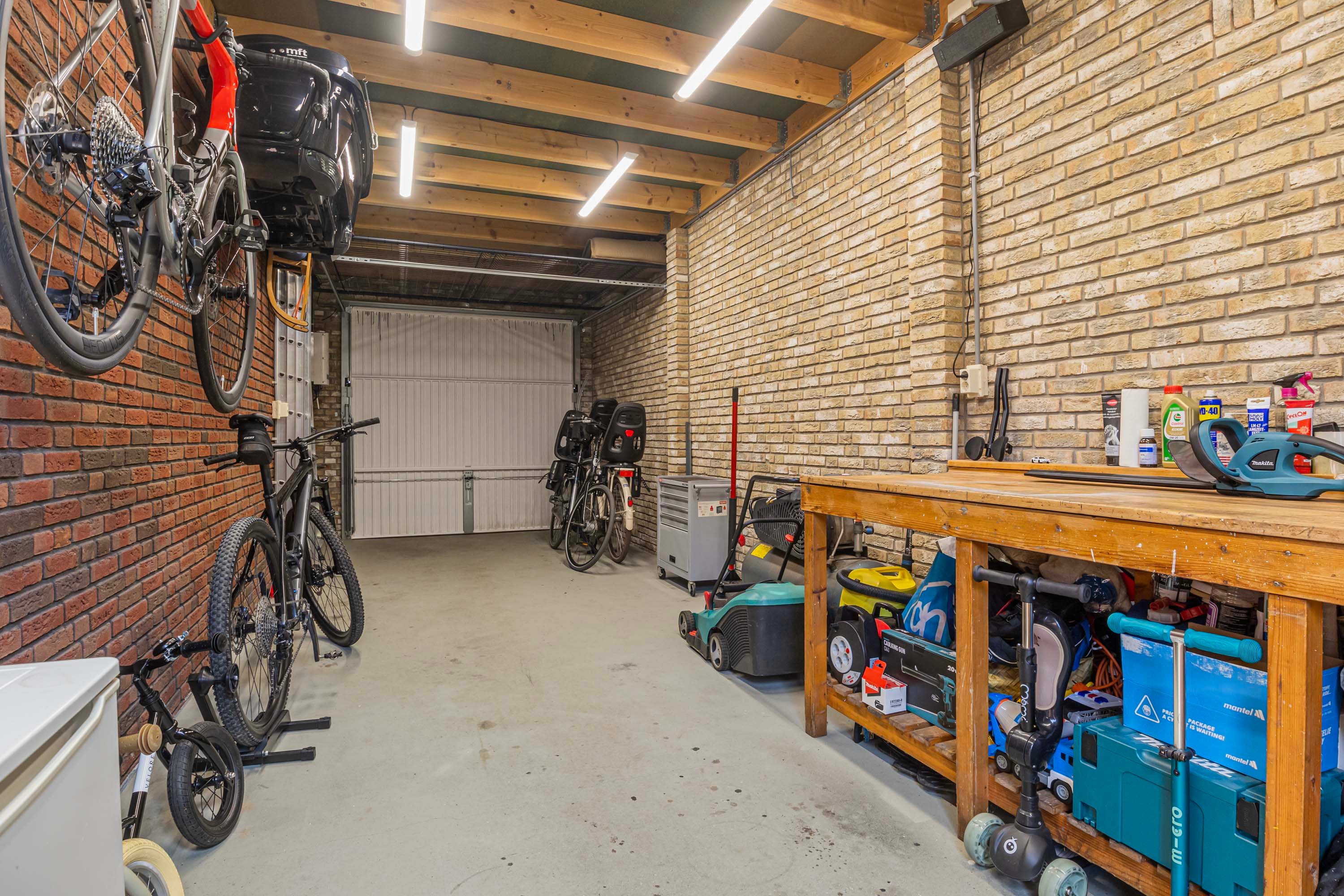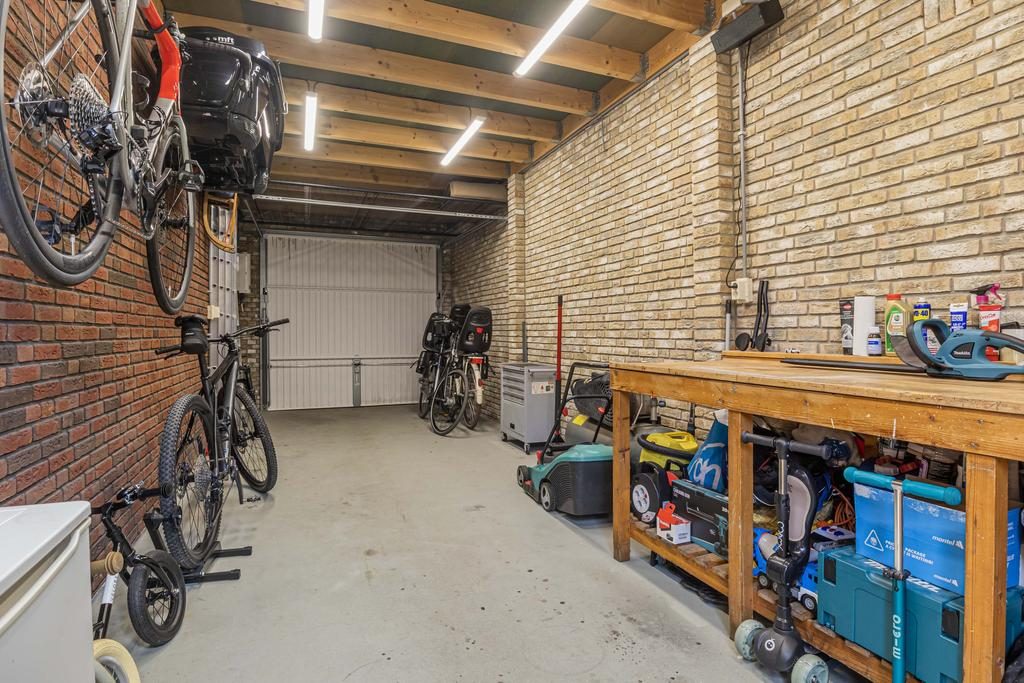 De stenen aangebouwde royale garage (ca. 23 m2) is voorzien van vloerverwarming (deze is nog niet aangesloten) waardoor er potentie is voor extra woonruimte. De dubbele oprit met laadpaal biedt plaats aan 2 auto’s. Tevens is er naast de garage voldoende ruimte voor een eventuele carport.