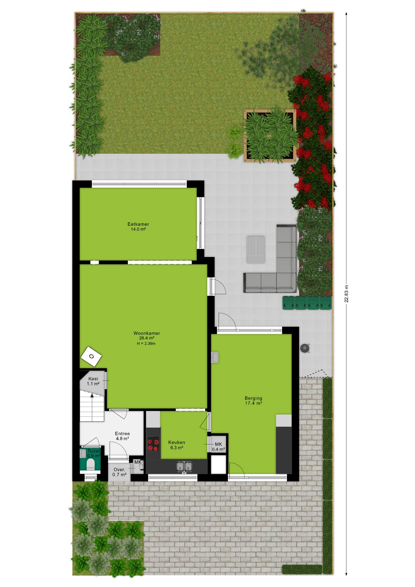 + Ruime 2-onder-1-kapwoning met 4 slaapkamers