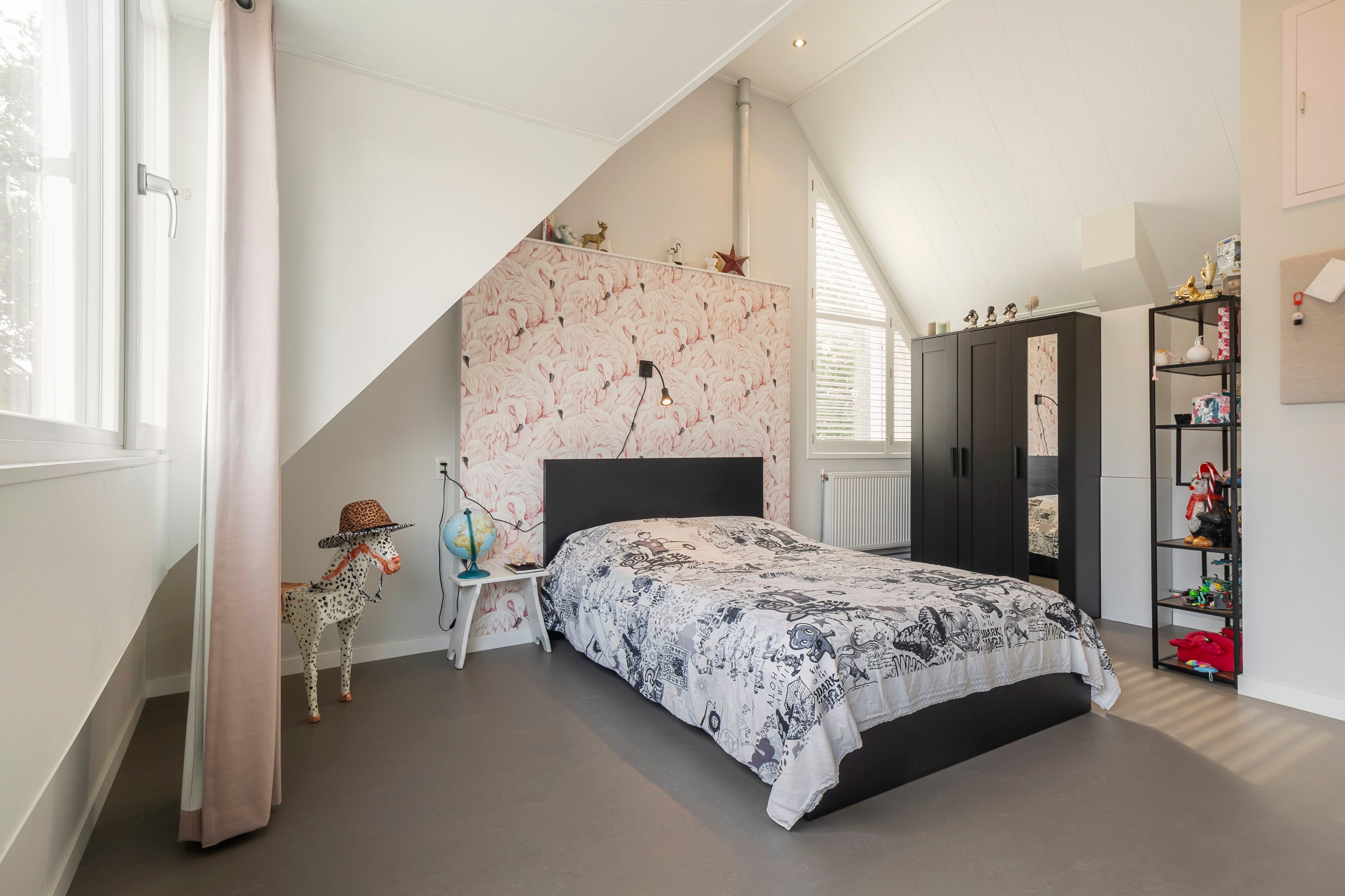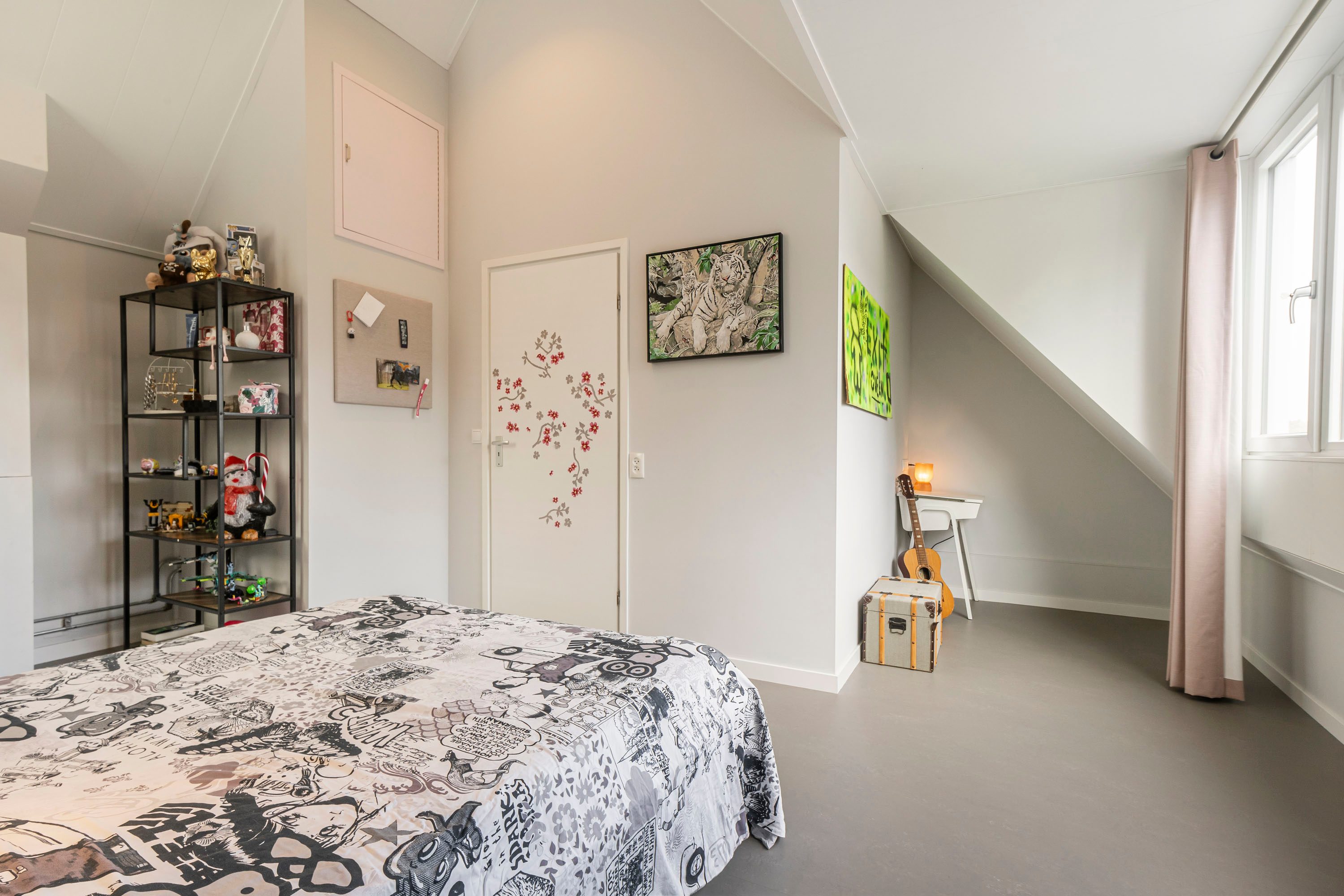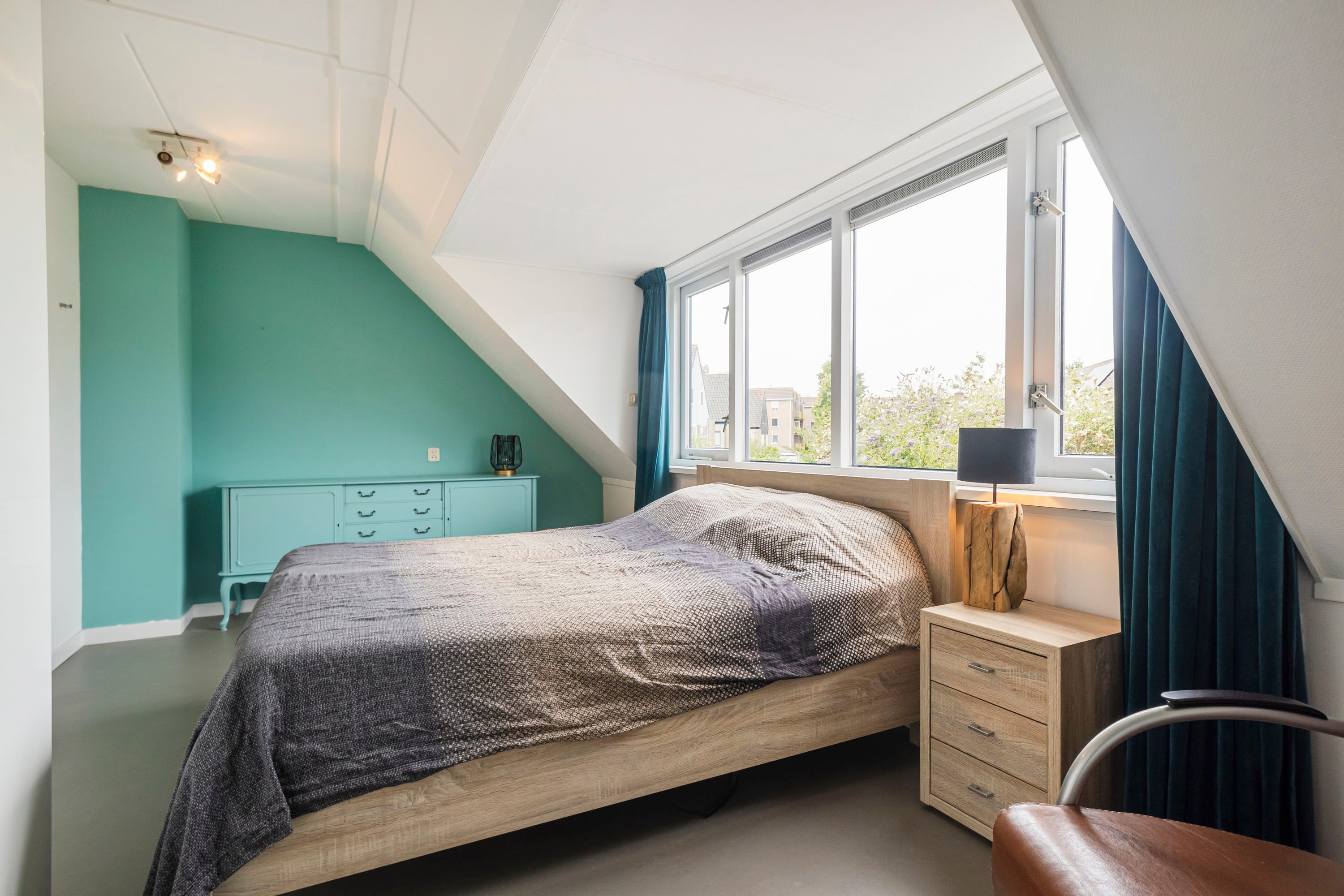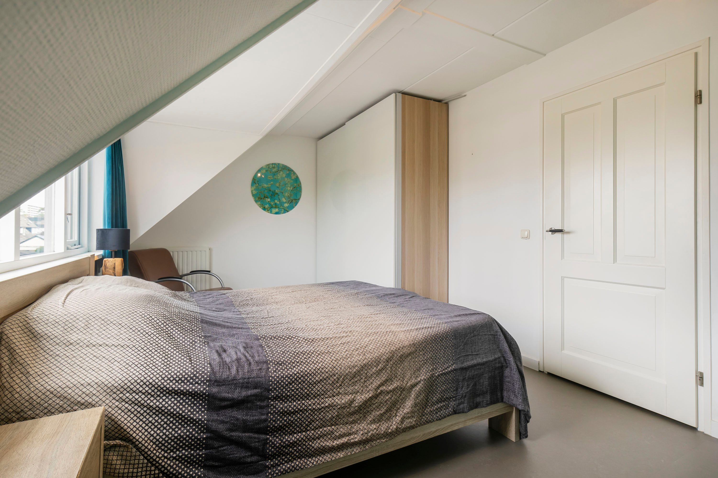 De tweede verdieping is te bereiken via een vaste trap. Hier bevinden zich de aansluiting voor de wasmachine en een vierde, ruime slaapkamer van 18 m². Deze kamer is voorzien van een dakkapel wat een lichte en prettige sfeer creëert, en biedt voldoende ruimte voor bijvoorbeeld een werkhoek.