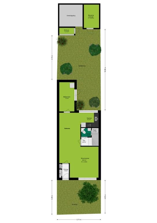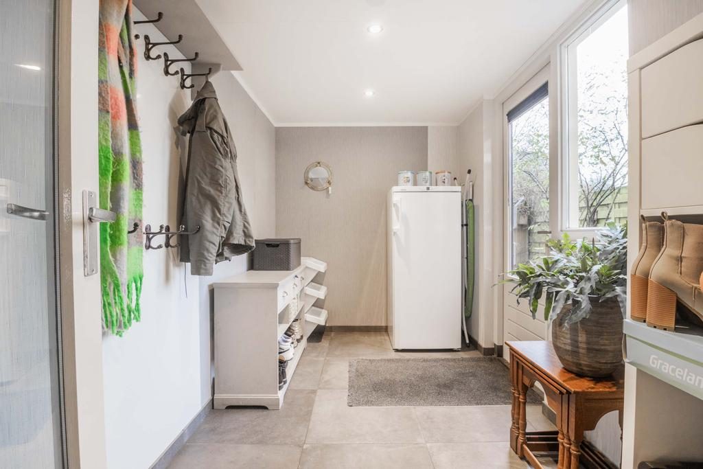 Vanuit de bijkeuken heb je directe toegang tot de achtertuin. Deze tuin is met zorg aangelegd. Achterin de tuin vind je een berging, die is ideaal voor het opbergen van tuingereedschap of het veilig stallen van fietsen. De tuin is ook toegankelijk via een achterom, wat extra gemak biedt voor het in- en uitgaan zonder door het huis te hoeven.