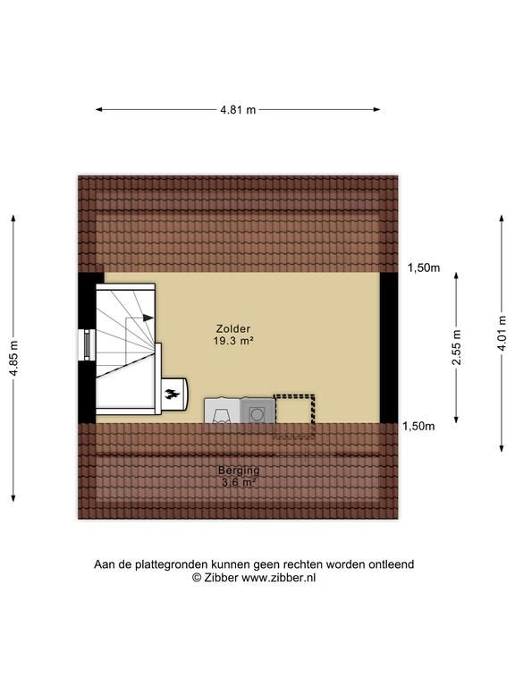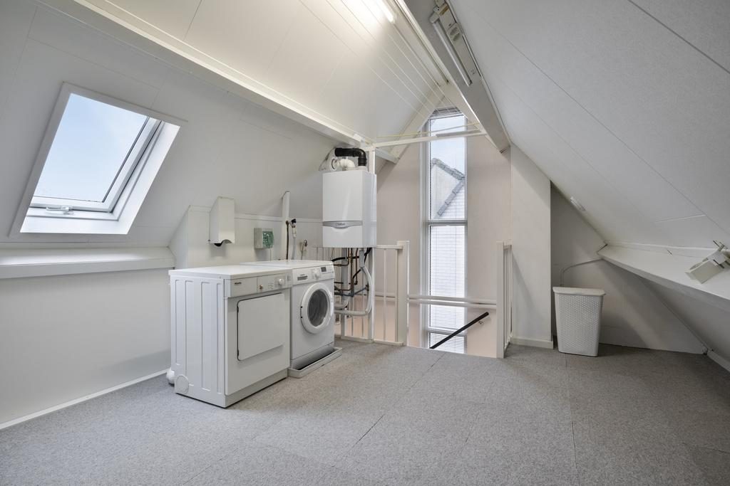 Op de zolder vind je de aansluitingen voor zowel de wasmachine als de droger, evenals de CV-installatie.