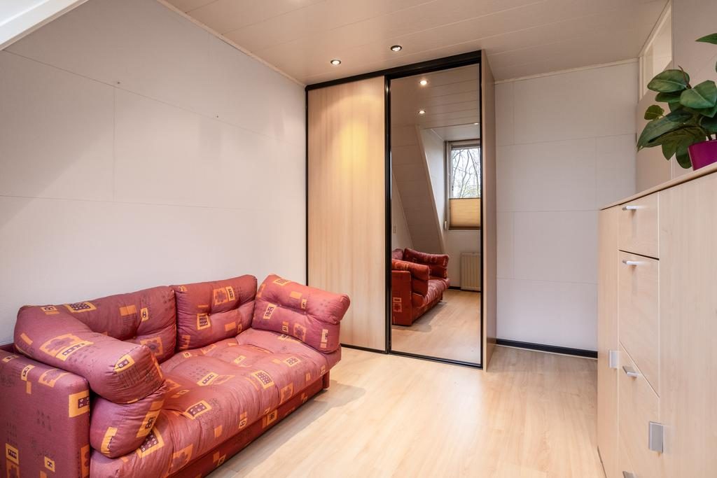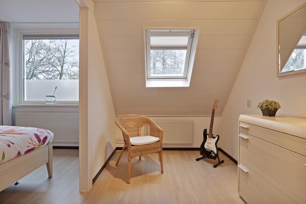 Vanaf de overloop bereik je de eerste slaapkamer. Deze kamer is niet alleen sfeervol, maar ook functioneel ingericht met een handige inbouwkast, waardoor je voldoende opbergruimte hebt voor kleding. De tweede slaapkamer op deze verdieping is royaal van formaat. Ook deze kamer is uitgerust met een ruime inbouwkast, wat bijdraagt aan de opgeruimde sfeer van de ruimte. Deze slaapkamer biedt voldoende ruimte voor een groot bed en eventueel een werk- of zithoek, waardoor het een veelzijdige plek is in de woning.