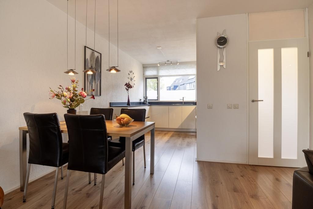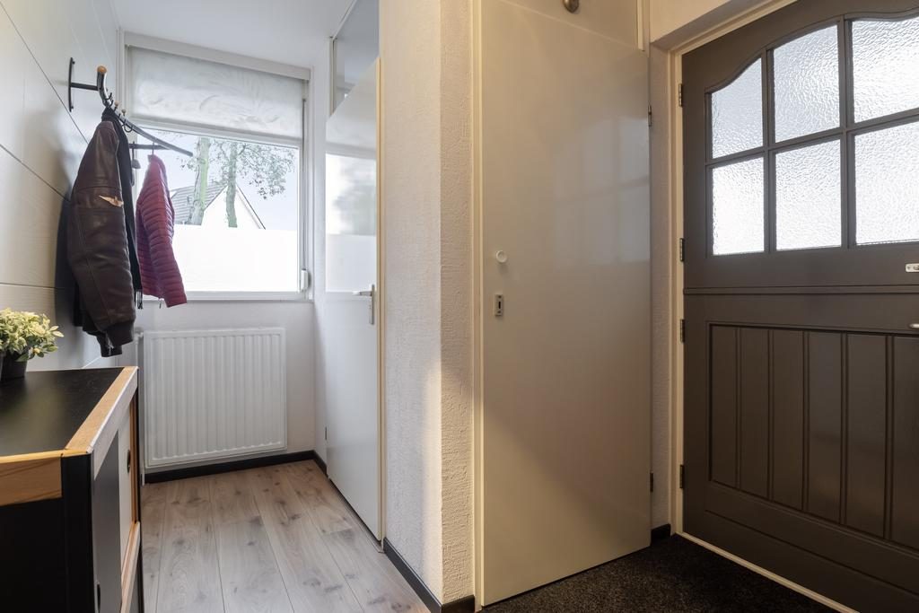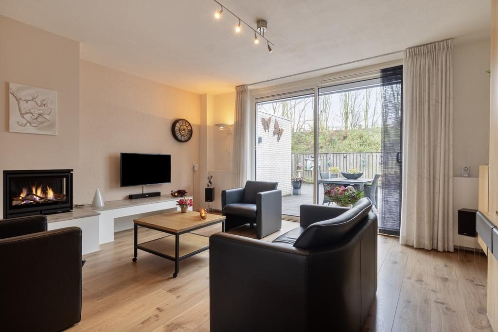 Wanneer je de woning binnenstapt, kom je terecht in een uitnodigende entree met een toilet voorzien van een fonteintje, de meterkast en de trapopgang naar de eerste verdieping. In de woonkamer geniet je van een overvloed aan natuurlijk licht dankzij de vele raampartijen met elektrisch zonnescherm , terwijl de open haard zorgt voor een warme en gezellige sfeer. Onder de trapopgang vind je een praktische berging, perfect voor extra opslagruimte.