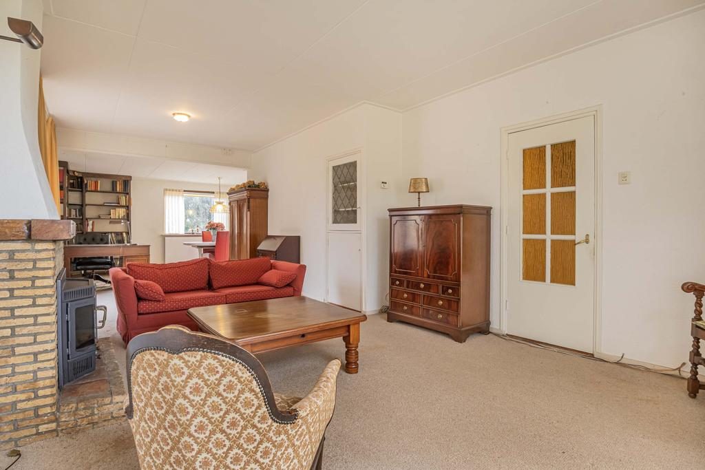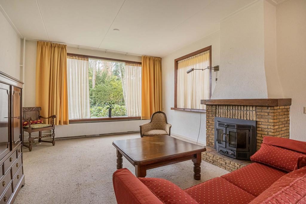 Via de eigen oprijlaan, waar ruimte is voor meerdere auto's, bereik je de woning. De entree met meterkast, separaat toilet en kelder geeft toegang tot de woonkamer. De royale woon-eetkamer is aan de achterzijde uitgebouwd en heeft een afmeting van ca 48m², is voorzien van neutrale vloer, sfeervolle haard, neutrale wanden en door de vele ramen komt er heerlijk veel licht binnen. Door de prettig afmeting is er ruimte genoeg voor een grote eettafel en ontstaat er een gezellig verbinding met de keuken. De (half) openkeuken heeft zeer veel bergruimte en is voorzien van een gasfornuis, koel-vriescombinatie en een oven.