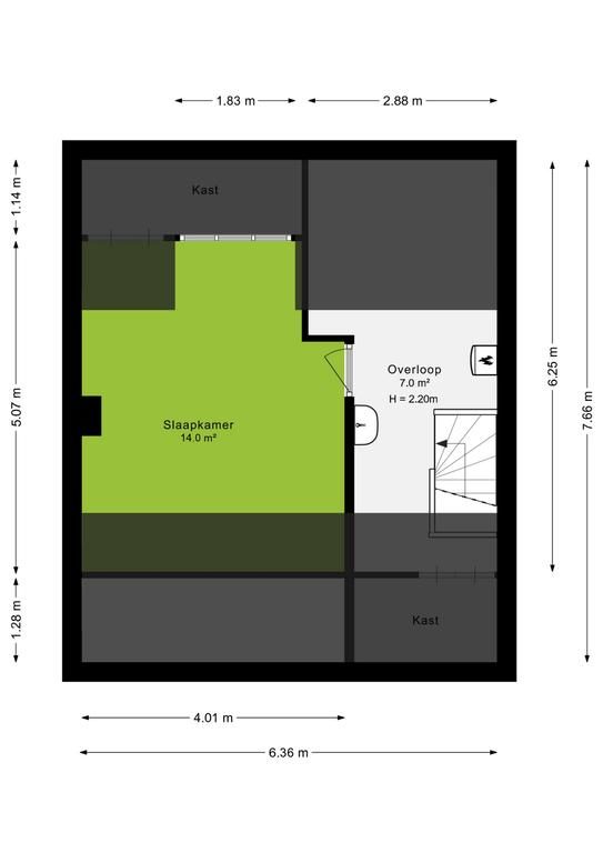Via een vaste trap is de volwaardige 2e verdieping te bereiken. De overloop biedt veel opbergruimte, hier is een handige wastafel aanwezig en de C.V.-ketel staat hier opgesteld. De slaapkamer op deze verdieping heeft een afmeting van ca. 14m². Ideale ruimte om als hobby-, sport-, werk-, logeer- of slaapkamer te gebruiken. De dakkapel op deze verdieping zorgt voor heerlijk veel lichtinval en vergroot echt het woongenot.