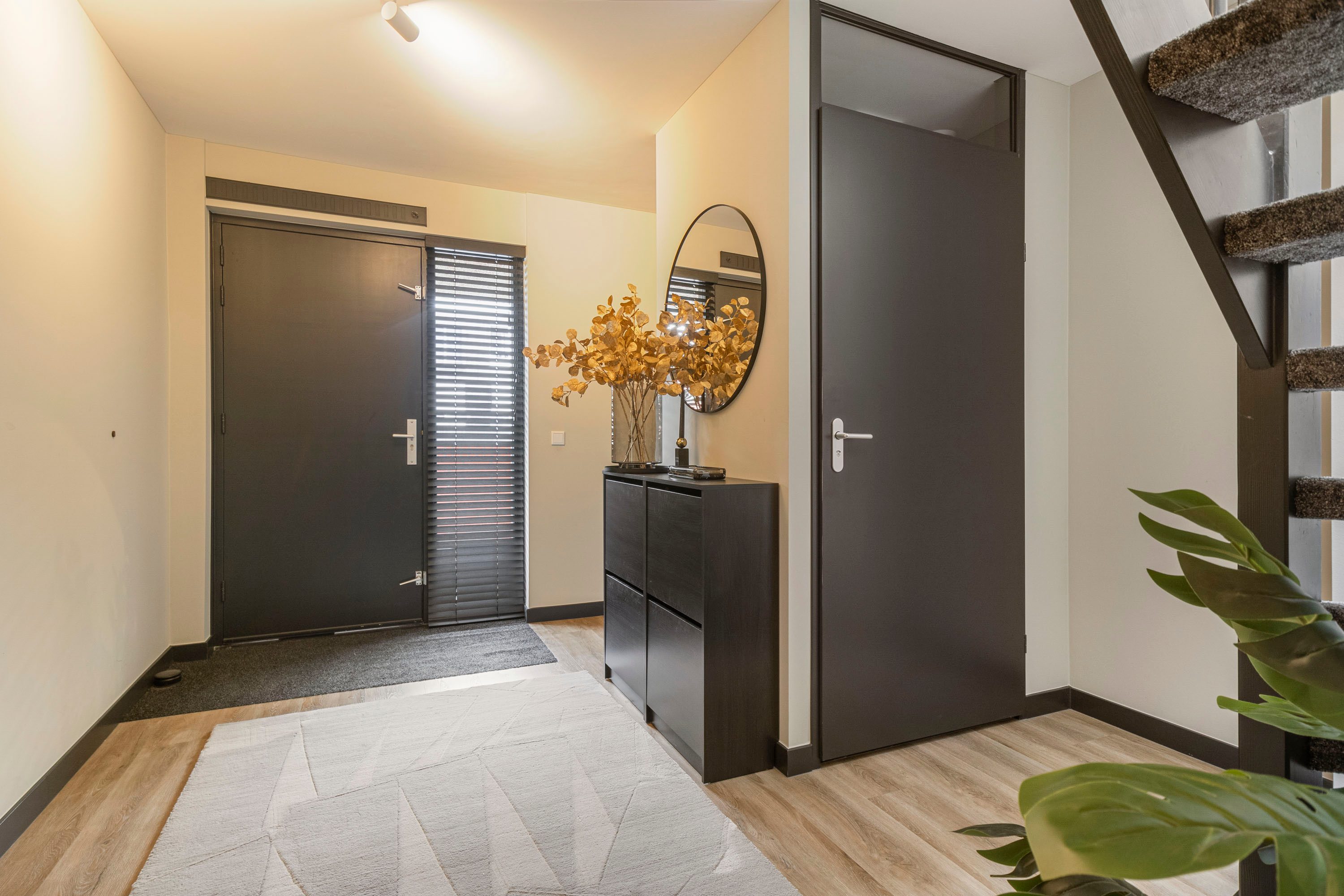 Bij binnenkomst betreed je eerst de nette, algemene entree met een intercomsysteem dat rechtstreeks in verbinding staat met de woning. De entree van de maisonnette is ruim, licht en functioneel: met volop natuurlijk daglicht, toilet en ruimte voor een garderobe.