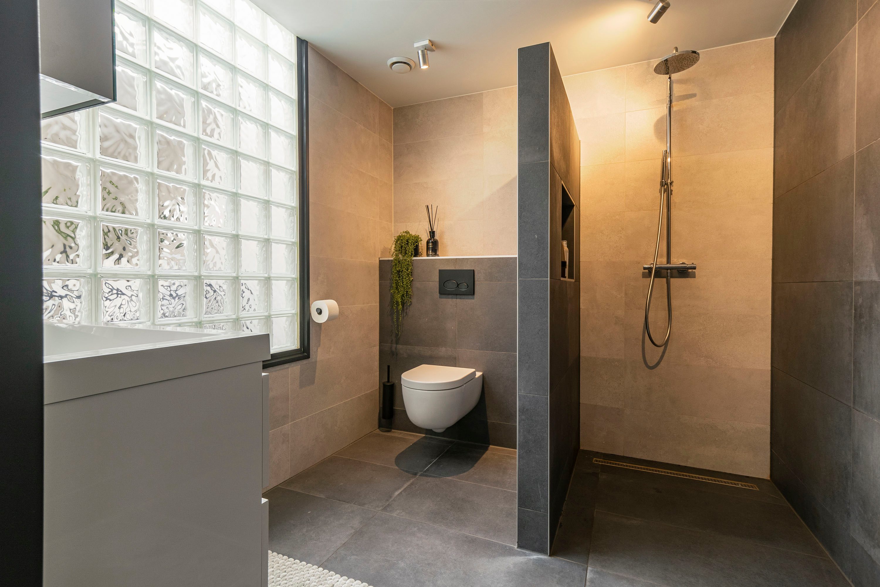 · Stijlvolle badkamer met riante inloopdouche en toilet