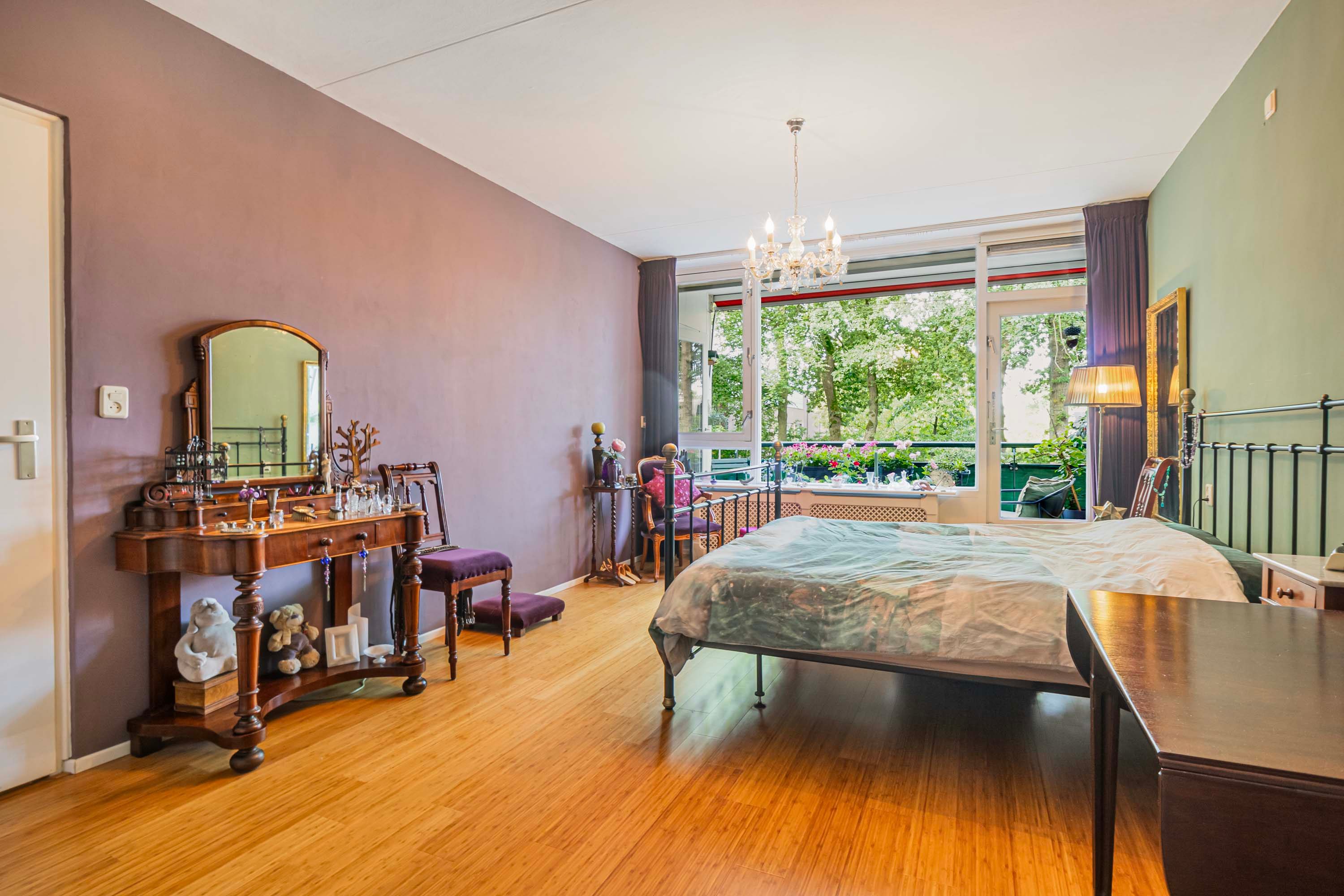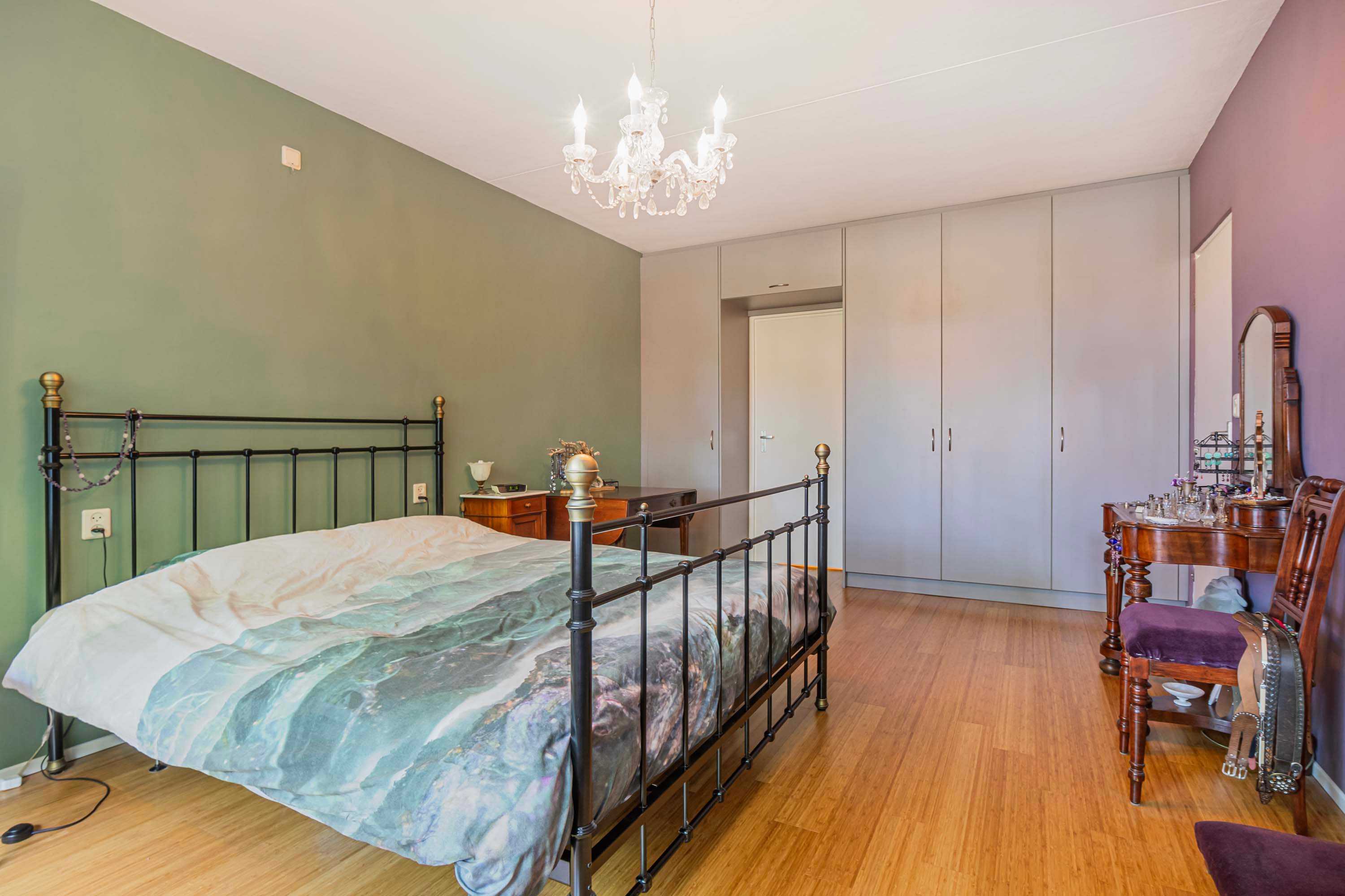 De twee slaapkamers (ca. 19 m² en 22 m²) zijn beide voorzien van op maat gemaakte inbouwkasten én directe toegang tot het balkon op het westen. De slimme indeling en grote raampartijen geven een open en luchtig gevoel.