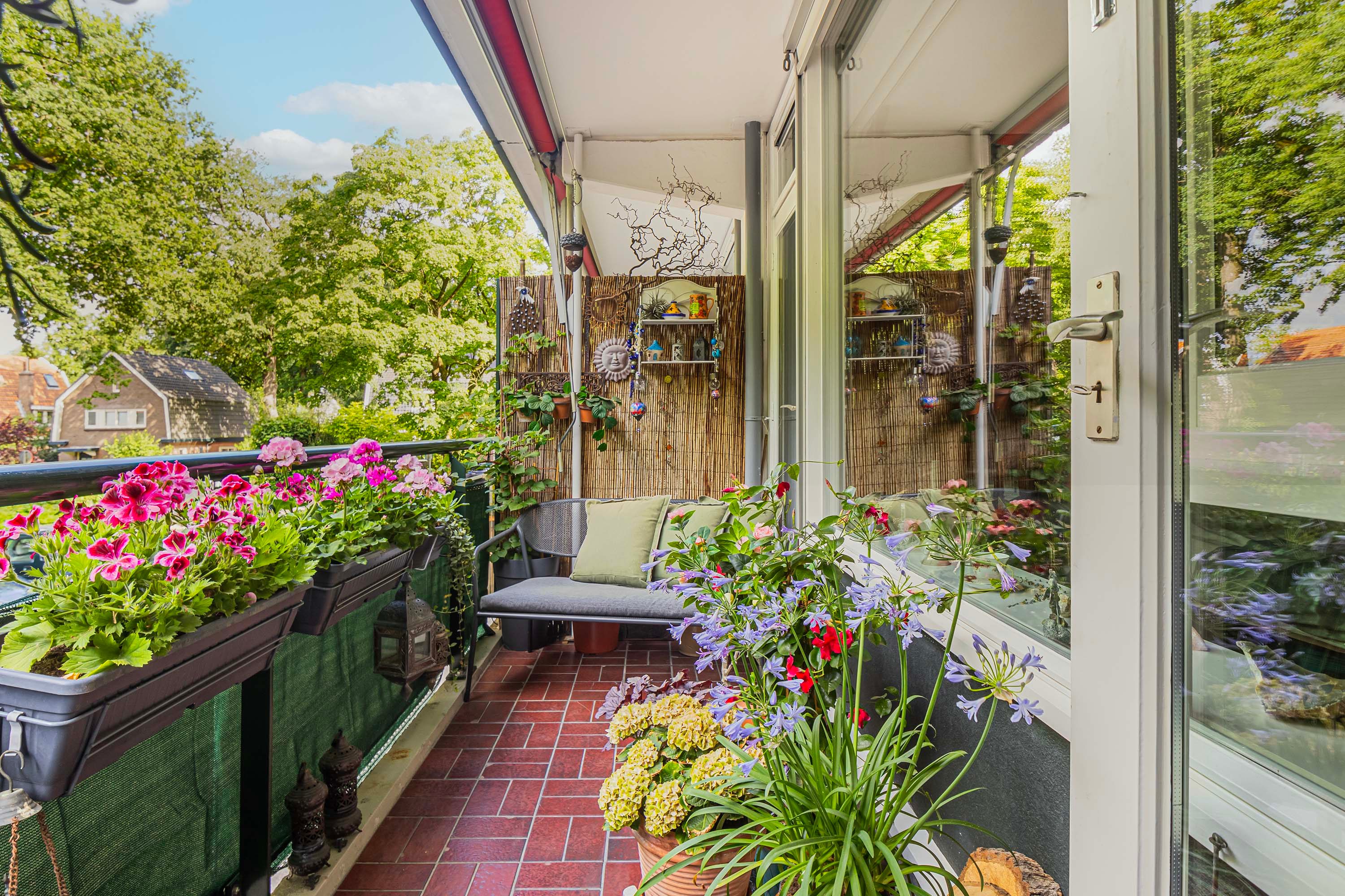 Het appartement heeft twee zonnige balkons, beide gelegen op het westen. Hierdoor kun je de hele middag en avond genieten van de zon. Beide balkons zijn bereikbaar via de woonkamer en slaapkamers en voorzien van een zonnescherm.