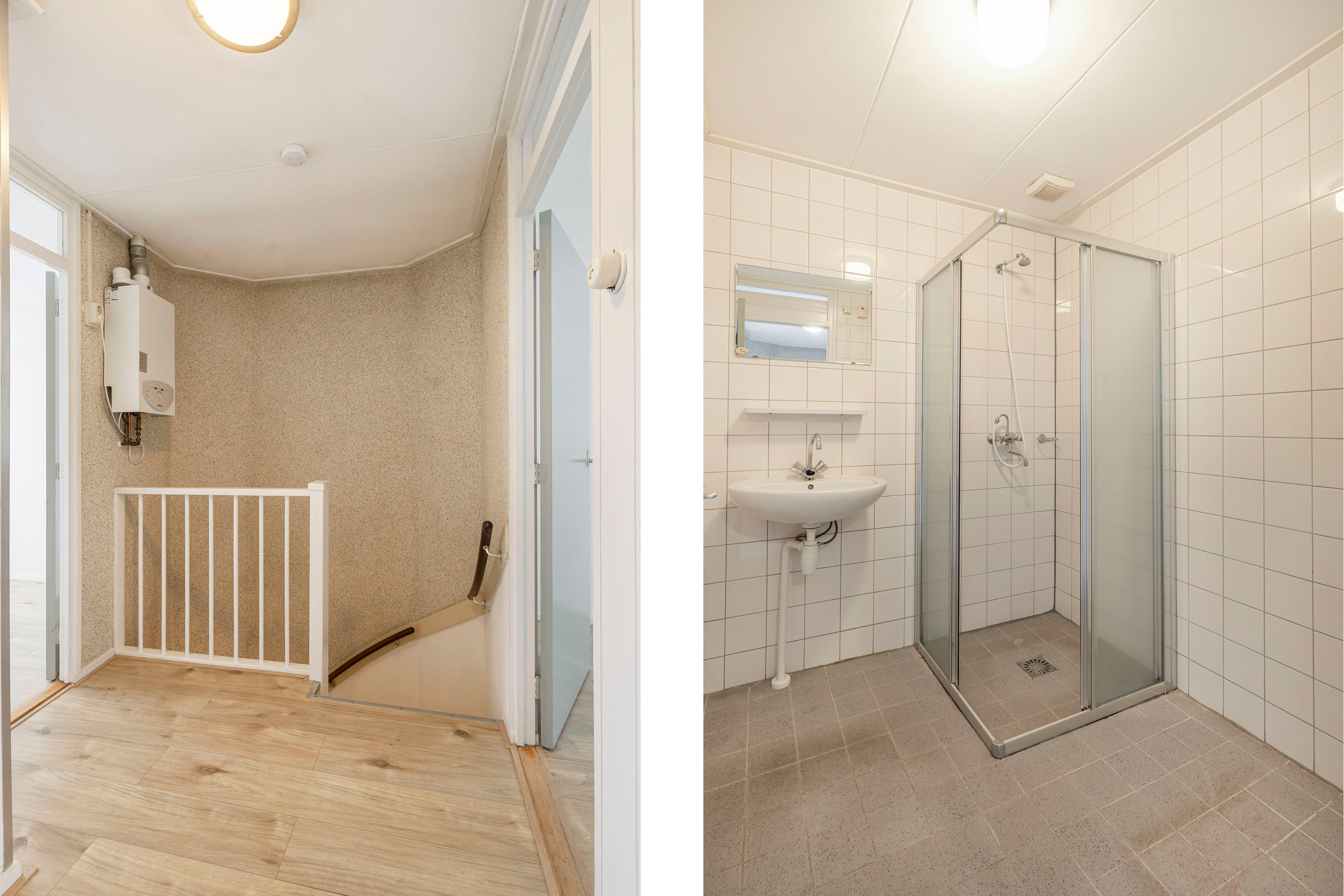 - Badkamer met douche, wastafel en witgoed aansluiting