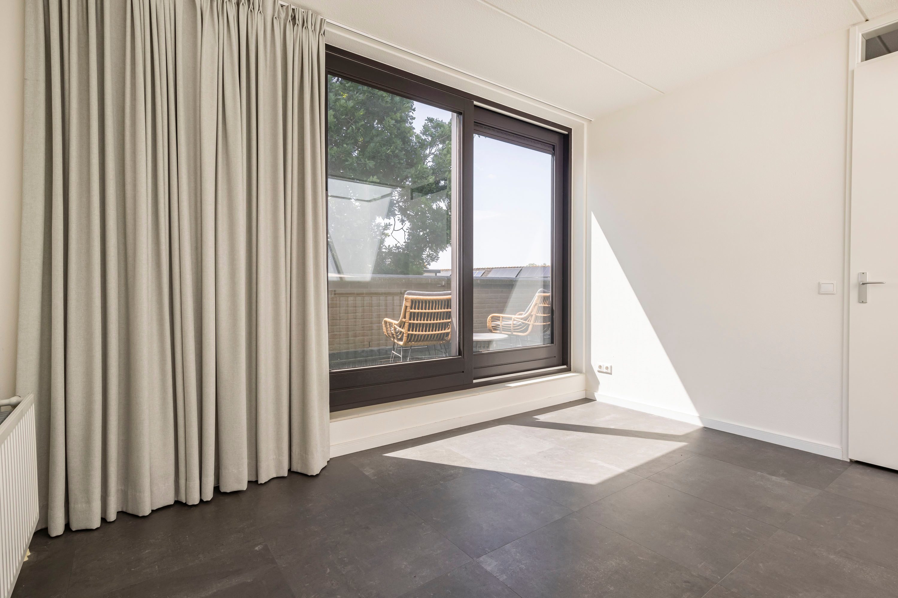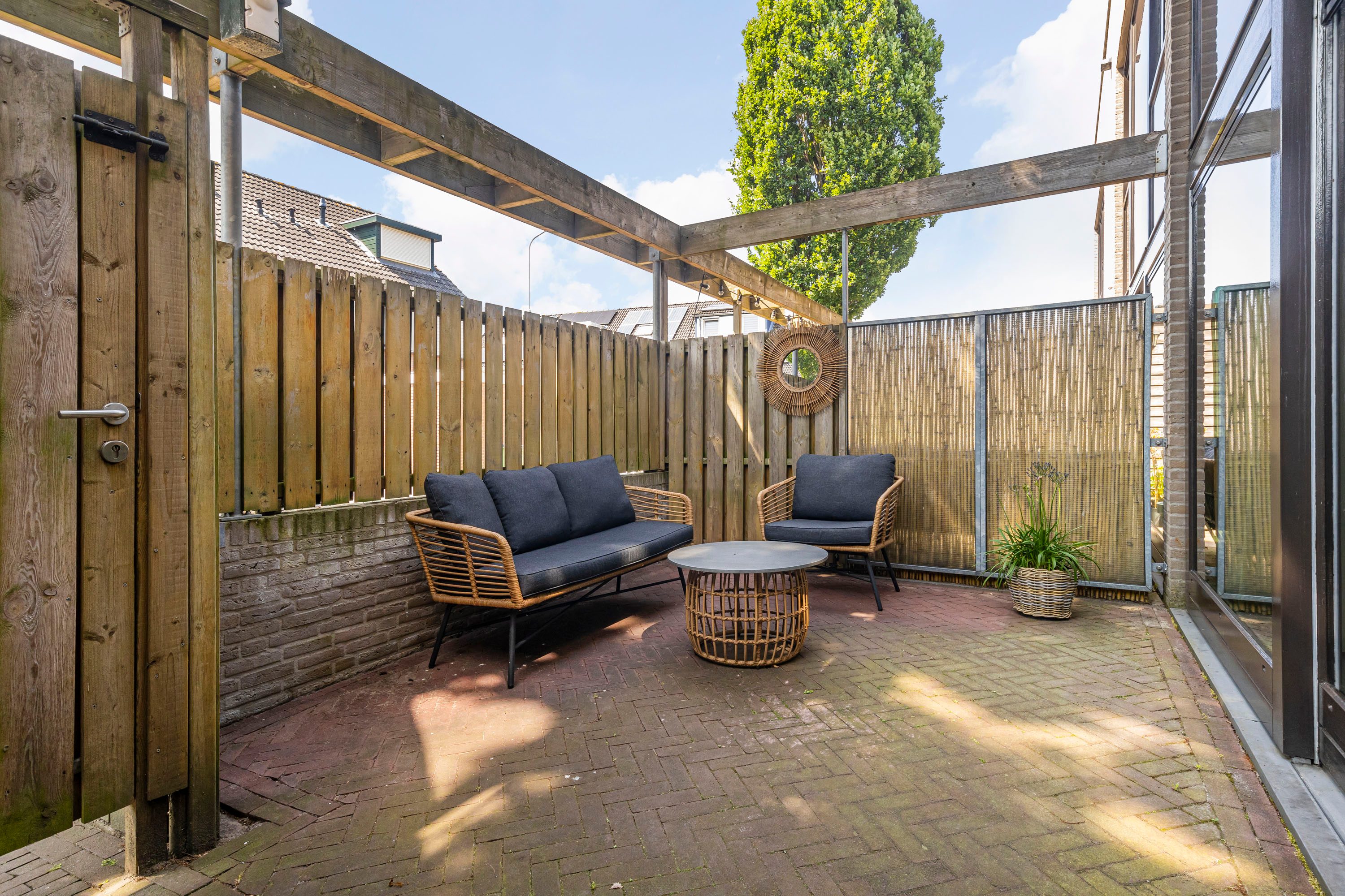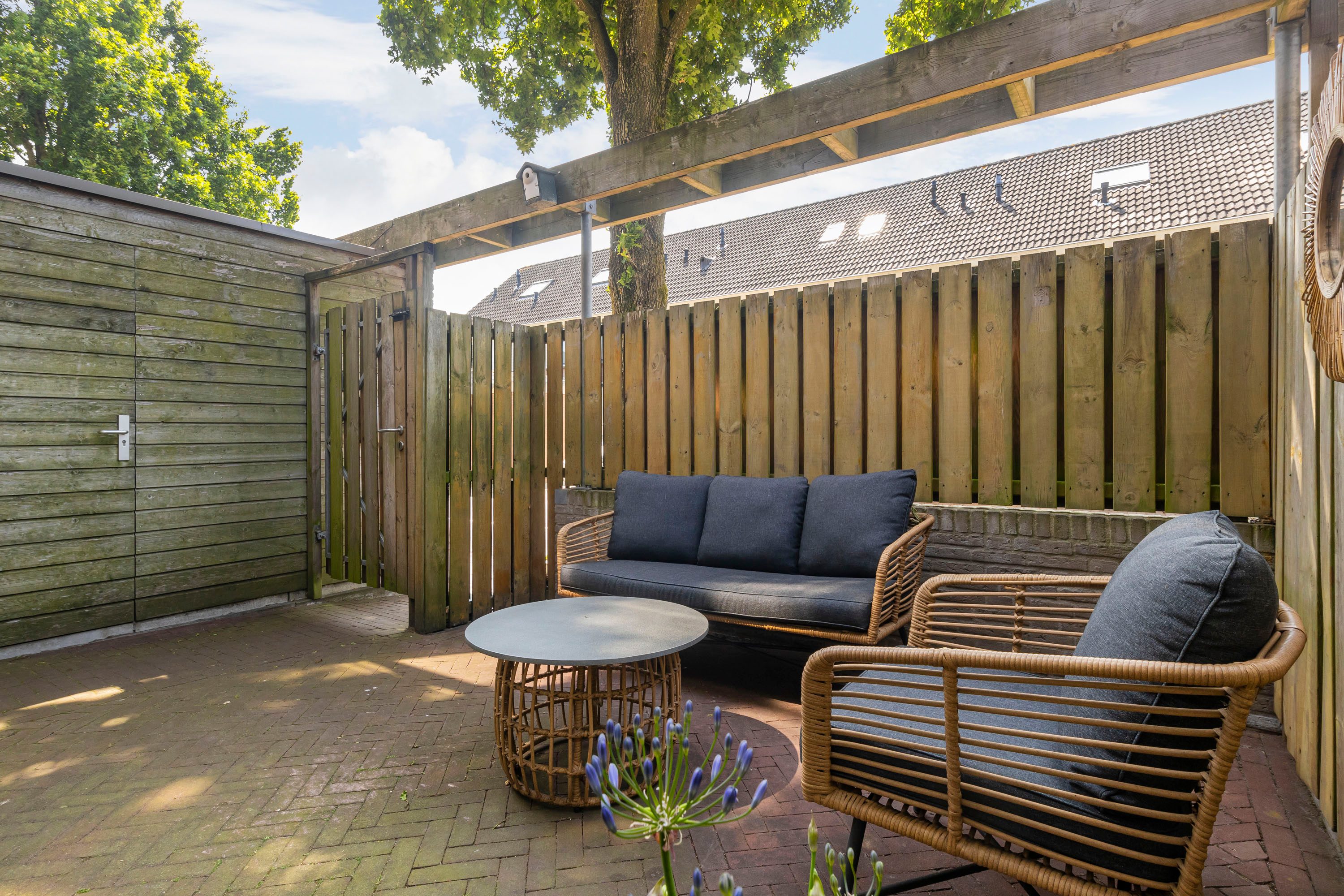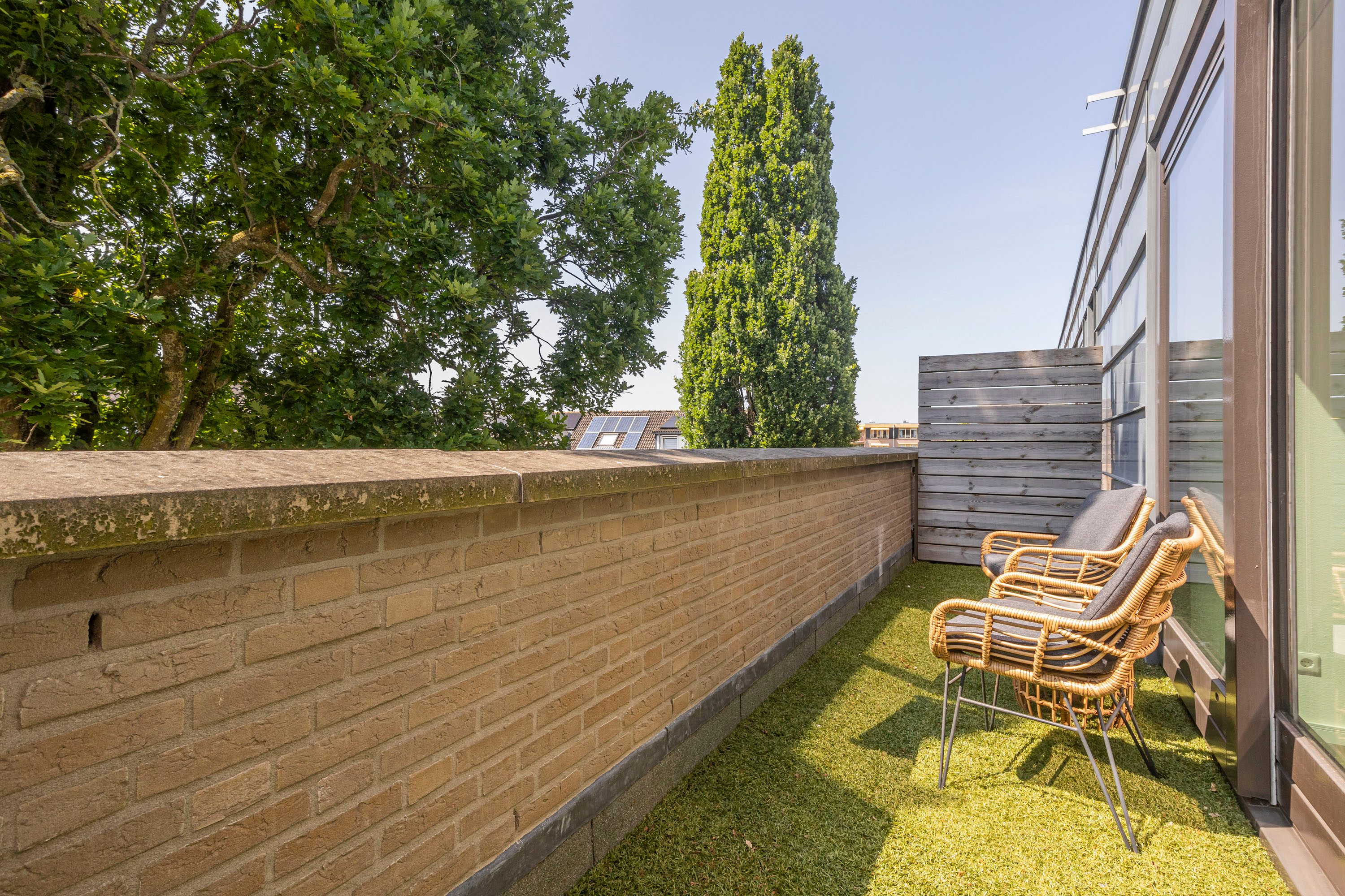 De voortuin is zonnig gelegen en biedt ruimte voor een zitje in de middagzon. Uniek is het dakterras, een privéplek waar je tot in de late uurtjes kunt genieten van het buitenleven. Barbecue, lounge of bloemenperk? Jij bepaalt.