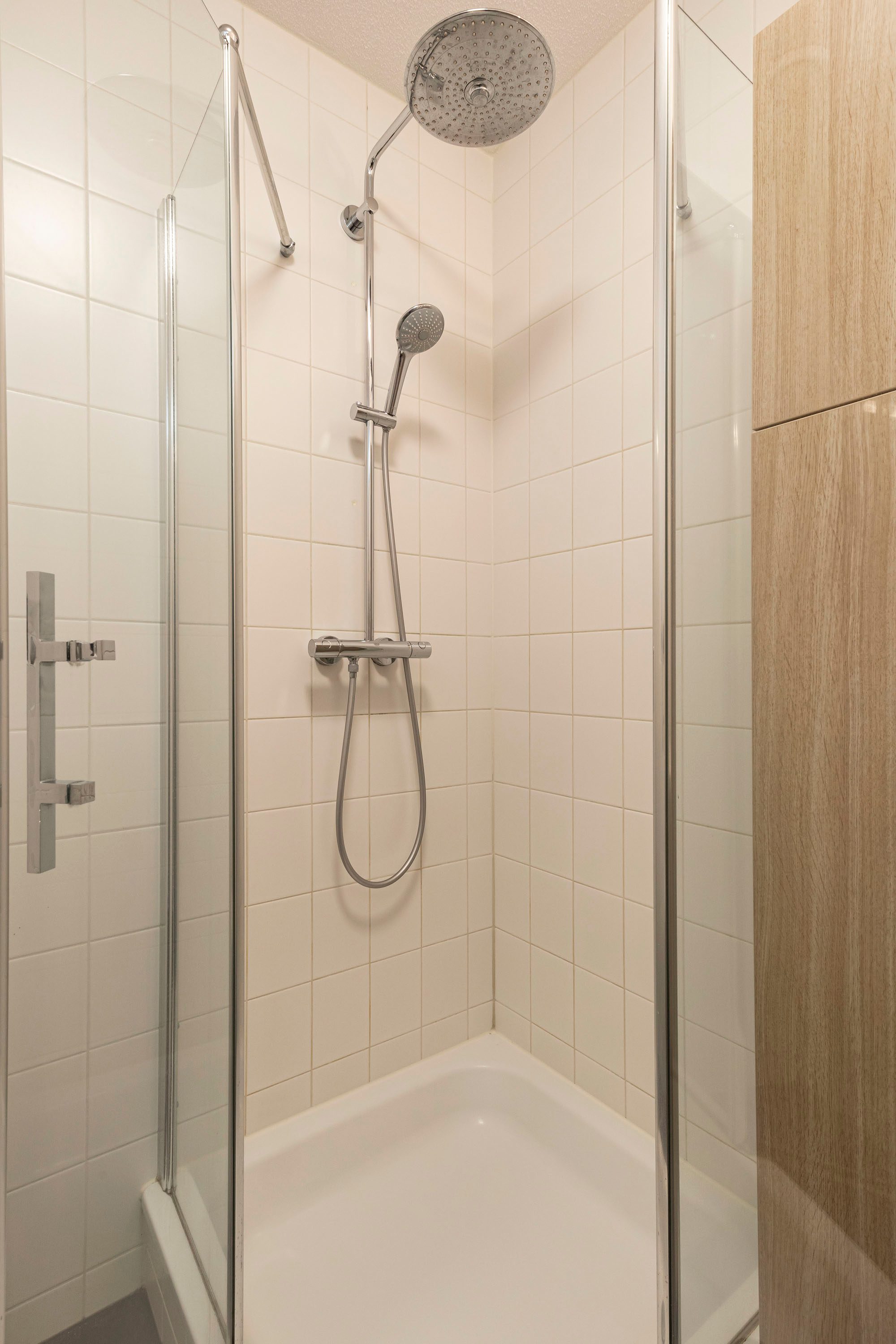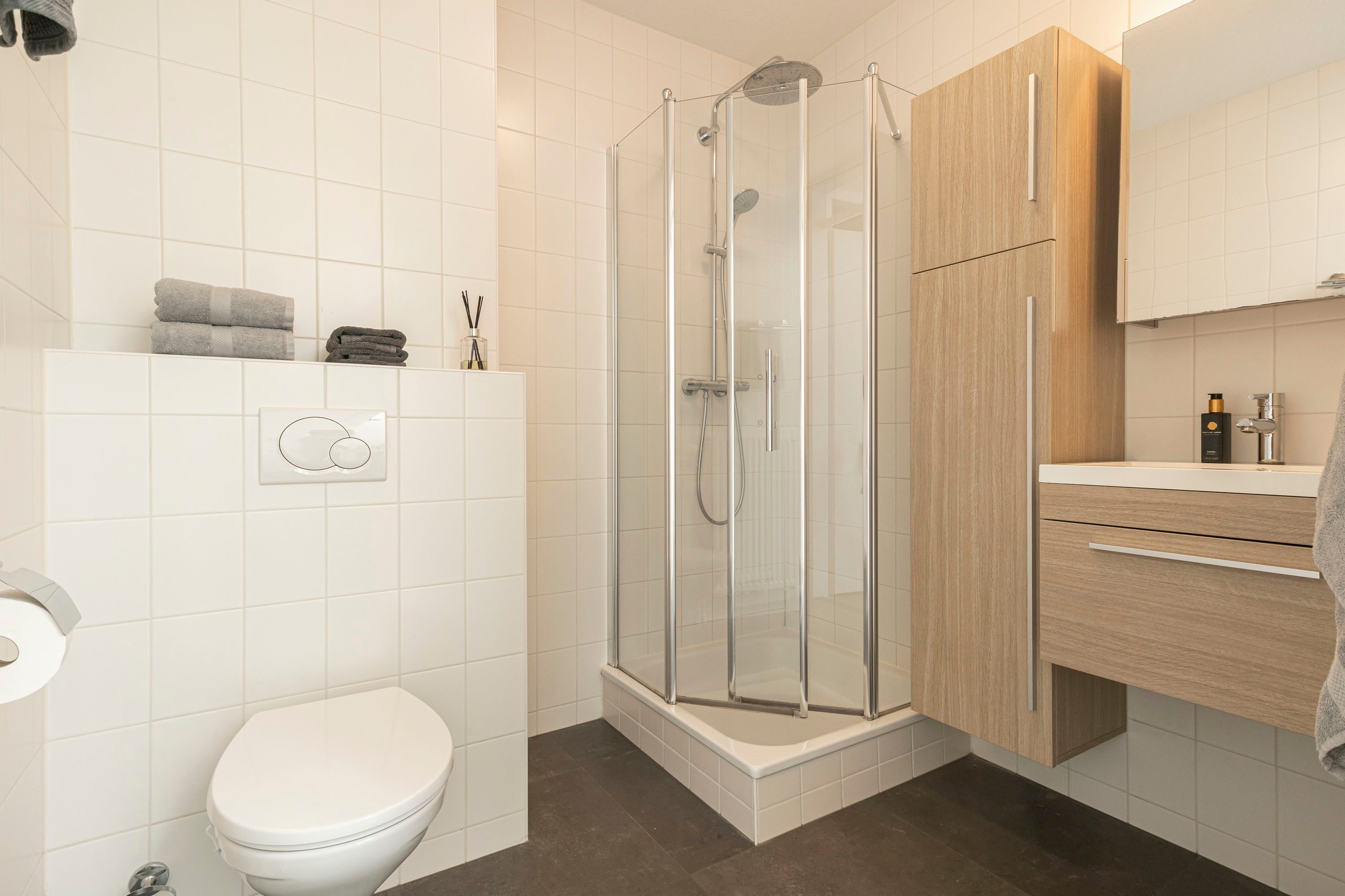 Op de verdieping vind je twee slaapkamers van goed formaat. Perfect voor hoofdslaapkamer, tweede slaapkamer, werkplek of hobbyruimte. De badkamer is modern en verzorgd, met een douchecabine, wastafelmeubel en een tweede toilet. Alles praktisch én stijlvol uitgevoerd.